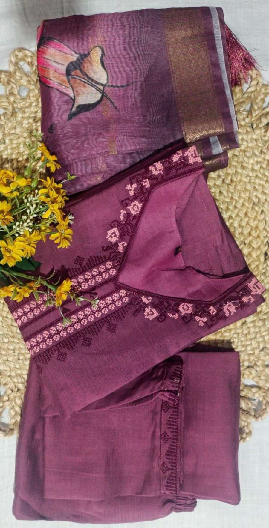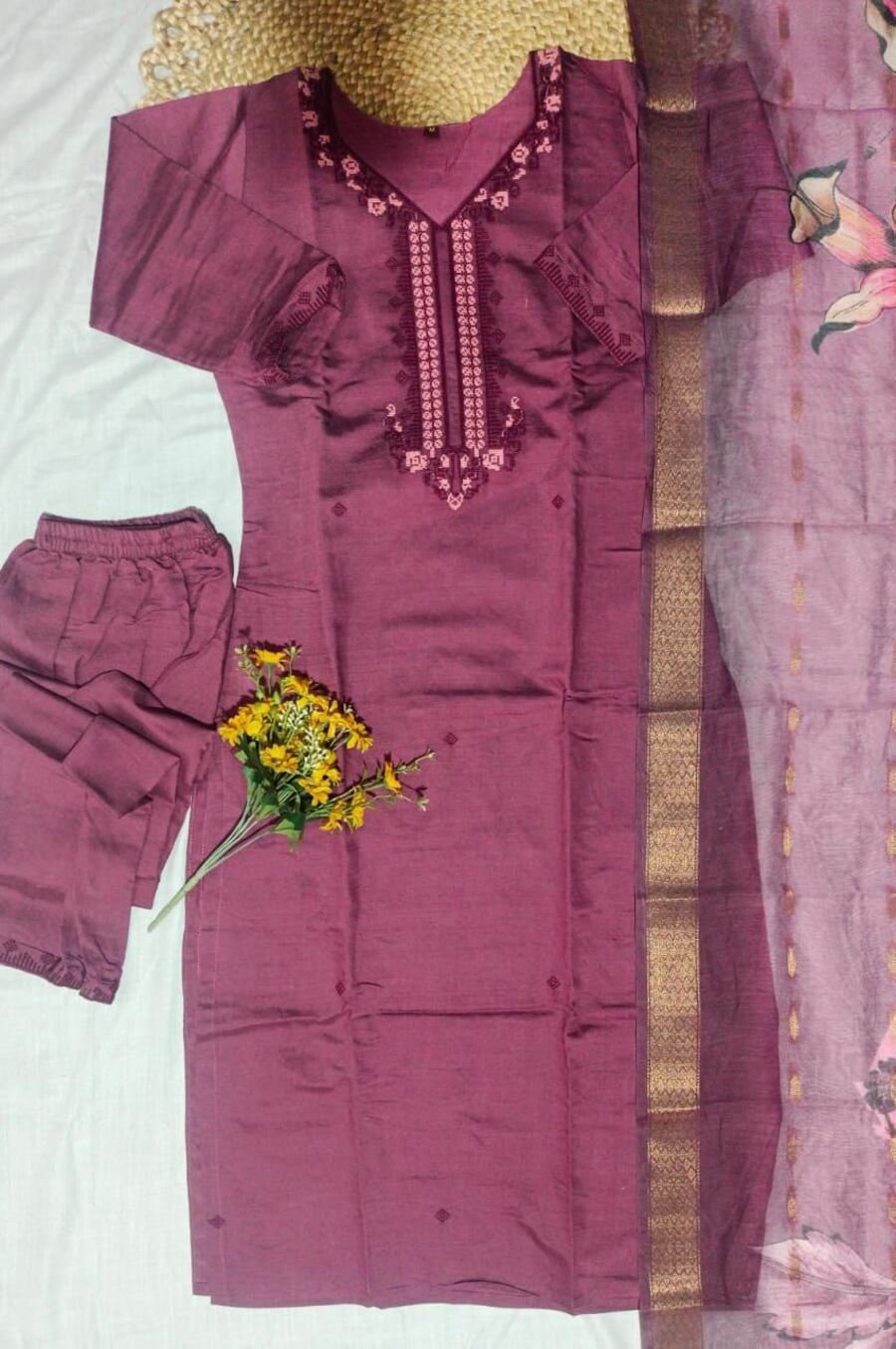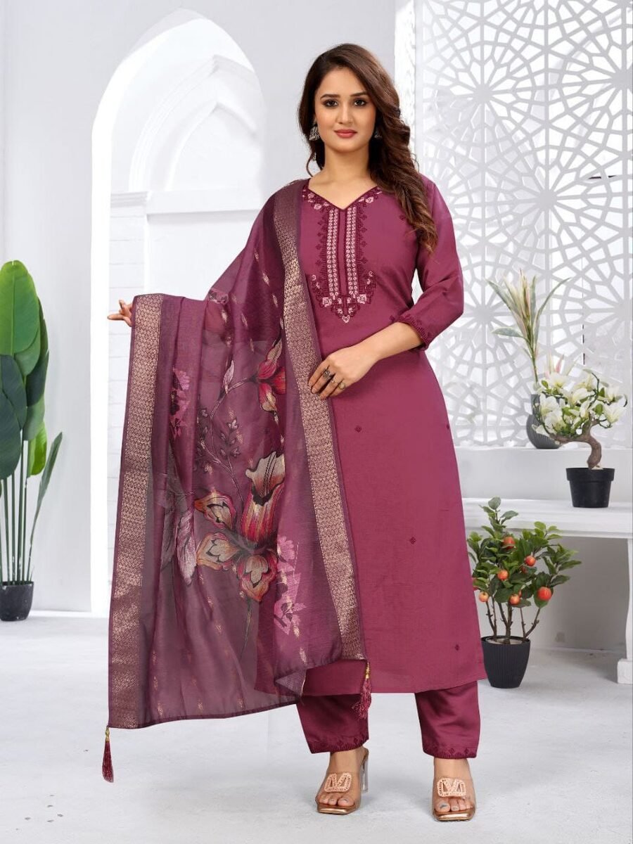 MODERN VISCOSE EMBROIDERY WORK TOP BOTTOM WITH DUPATTA WINE