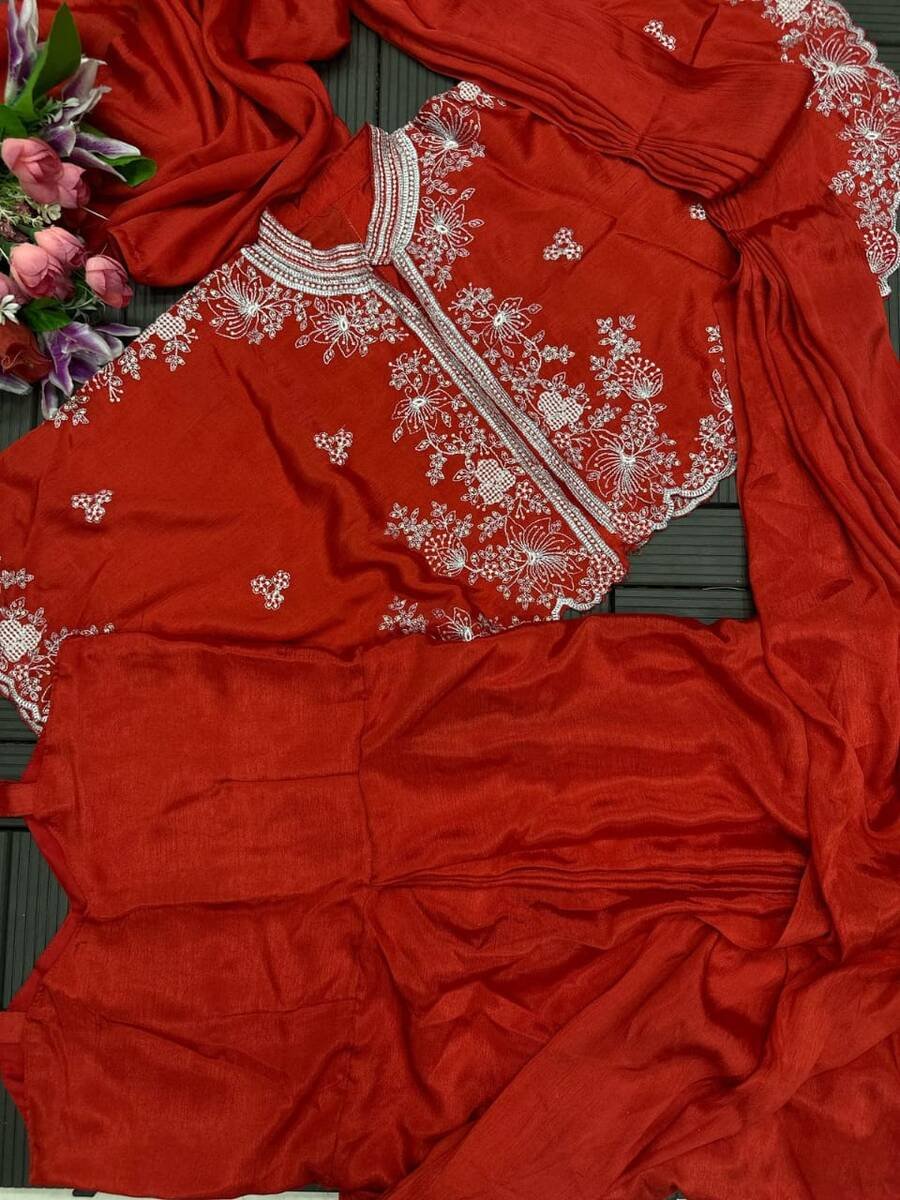 GOWN SAREE FABRIC : HEAVY CHINON DUPATTA ATTACHED