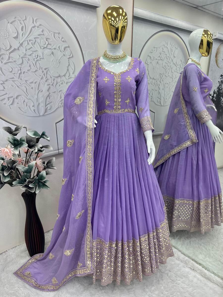 MOST PICKED CRUNCHY SILK EMBROIDERY CODING & SEQUENCE WORK GOWN WITH DUPATTA LAVENDER
