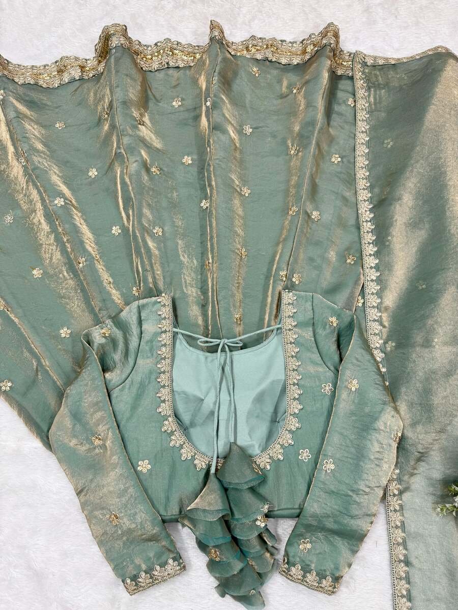 MOST PICKED FANDY SILK CODING SEQUENCE WORK GOWN BOTTOM WITH DUPATTA MINT