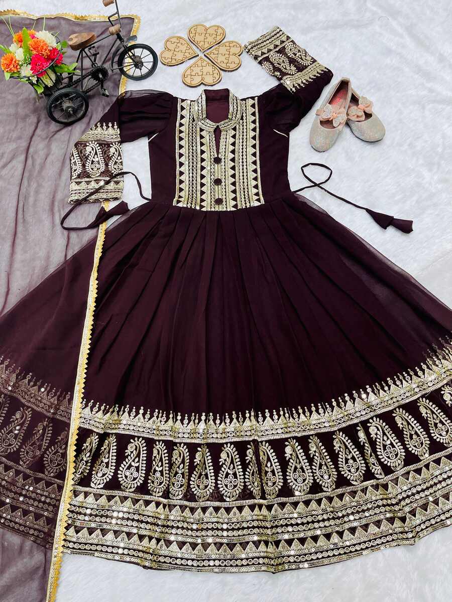 FABRIC :- HEAVY FAUX GEORGETTE WITH EMBROIDERY SEQUENCE WORK WITH FANCY BUTTON WHIT LATKAN DORI