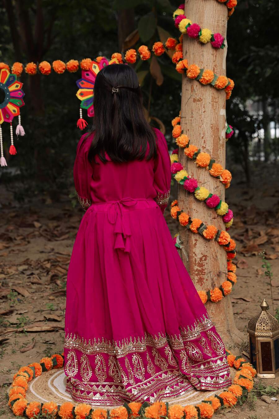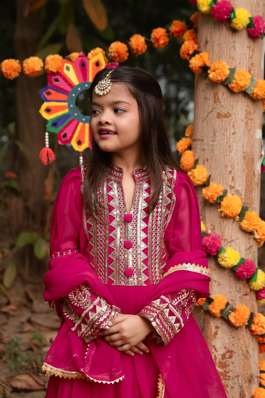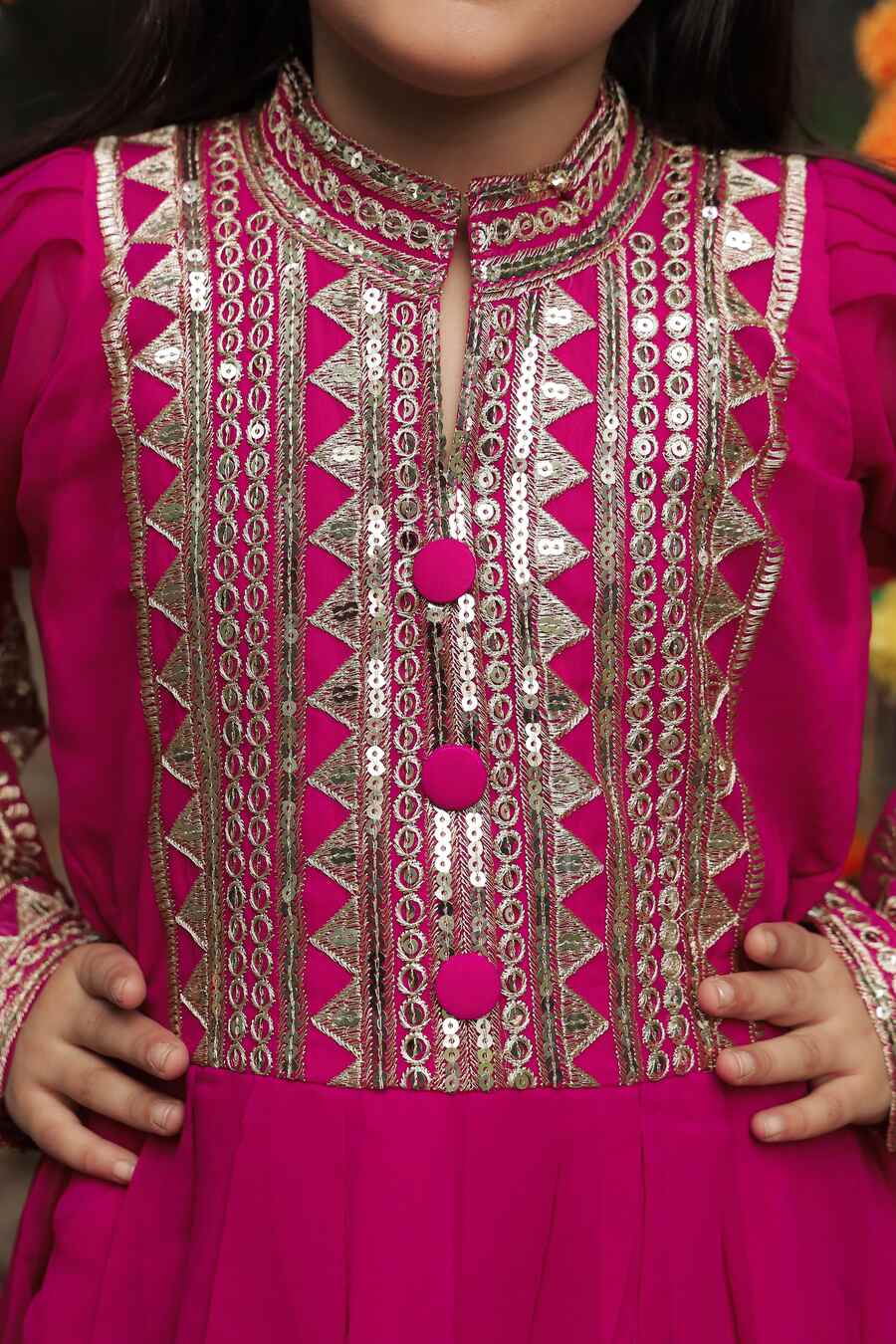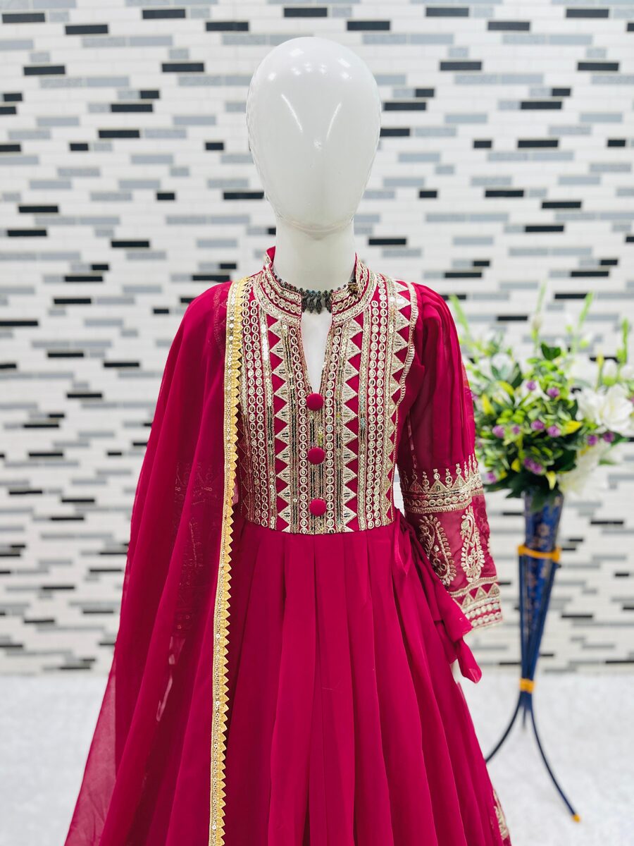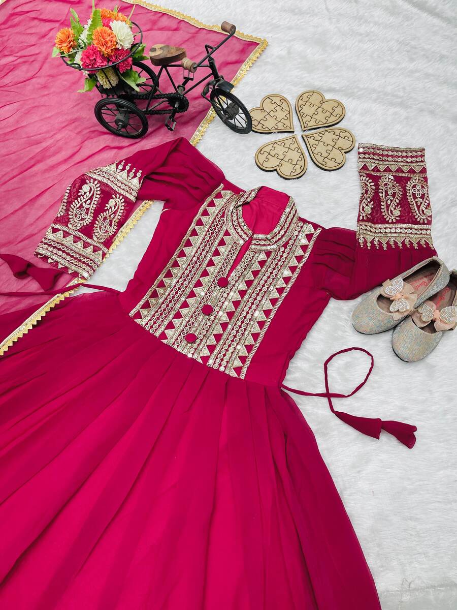 FABRIC :- HEAVY FAUX GEORGETTE WITH EMBROIDERY SEQUENCE WORK WITH FANCY BUTTON WHIT LATKAN DORI