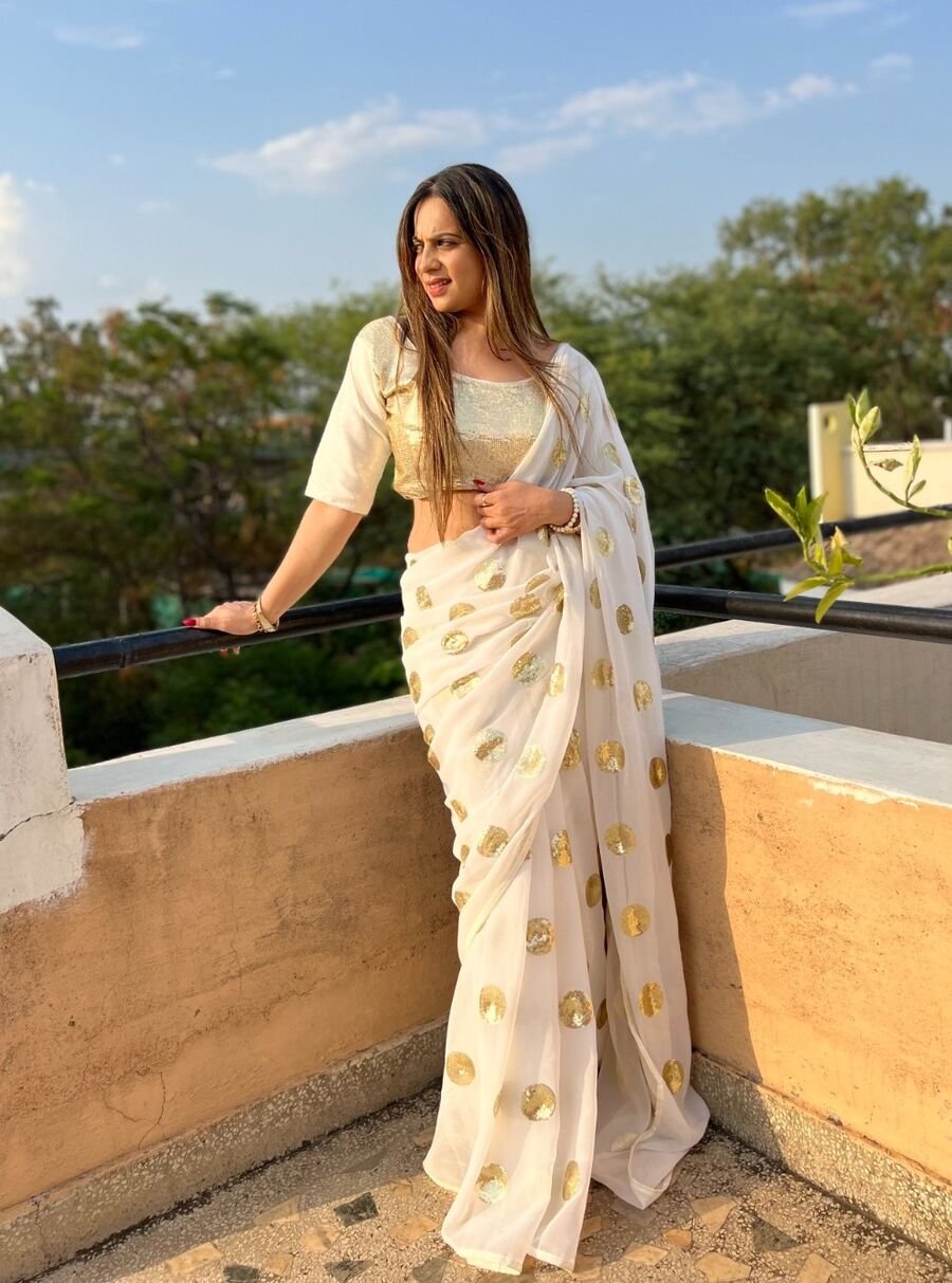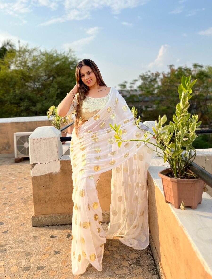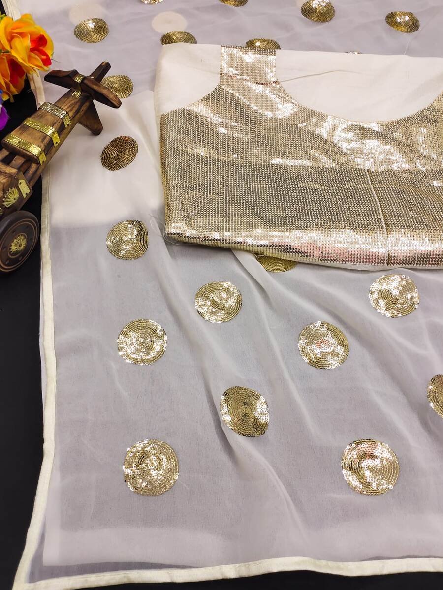 MOST PICKED GEORGETTE EMBROIDERY SEQUENCE WORK SAREE WITH UNSTITCHED BLOUSE WHITE
