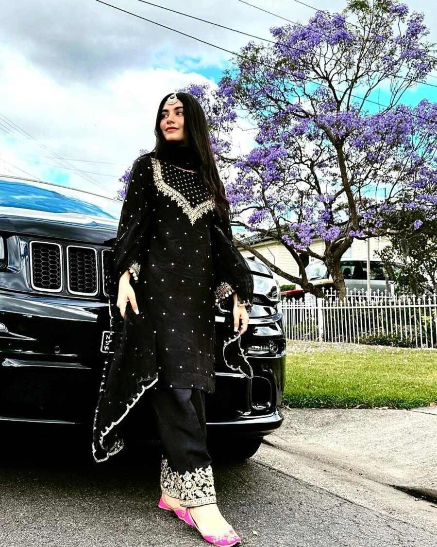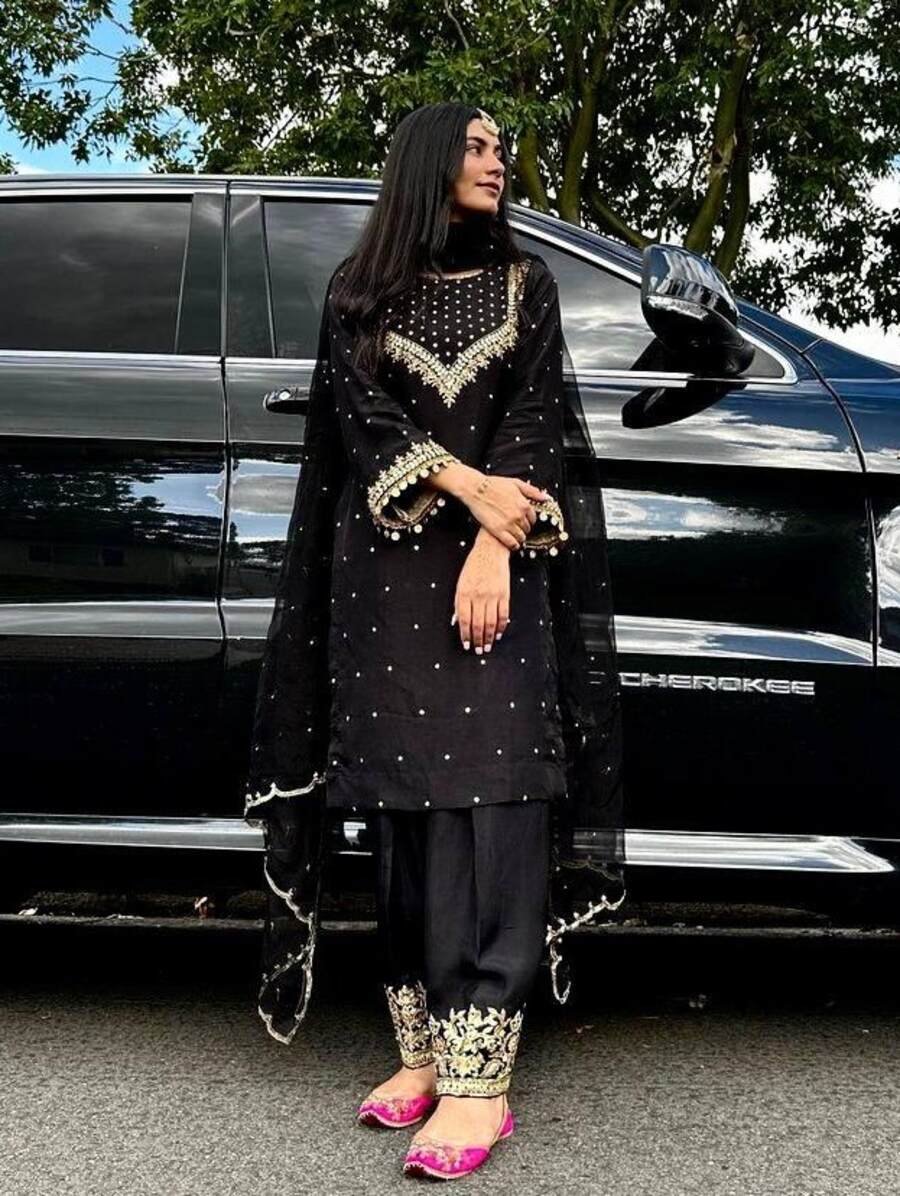 MOST PICKED GEORGETTE EMBROIDERY SEQUENCE ZARI WORK TOP PALAZZO WITH DUPATTA BLACK