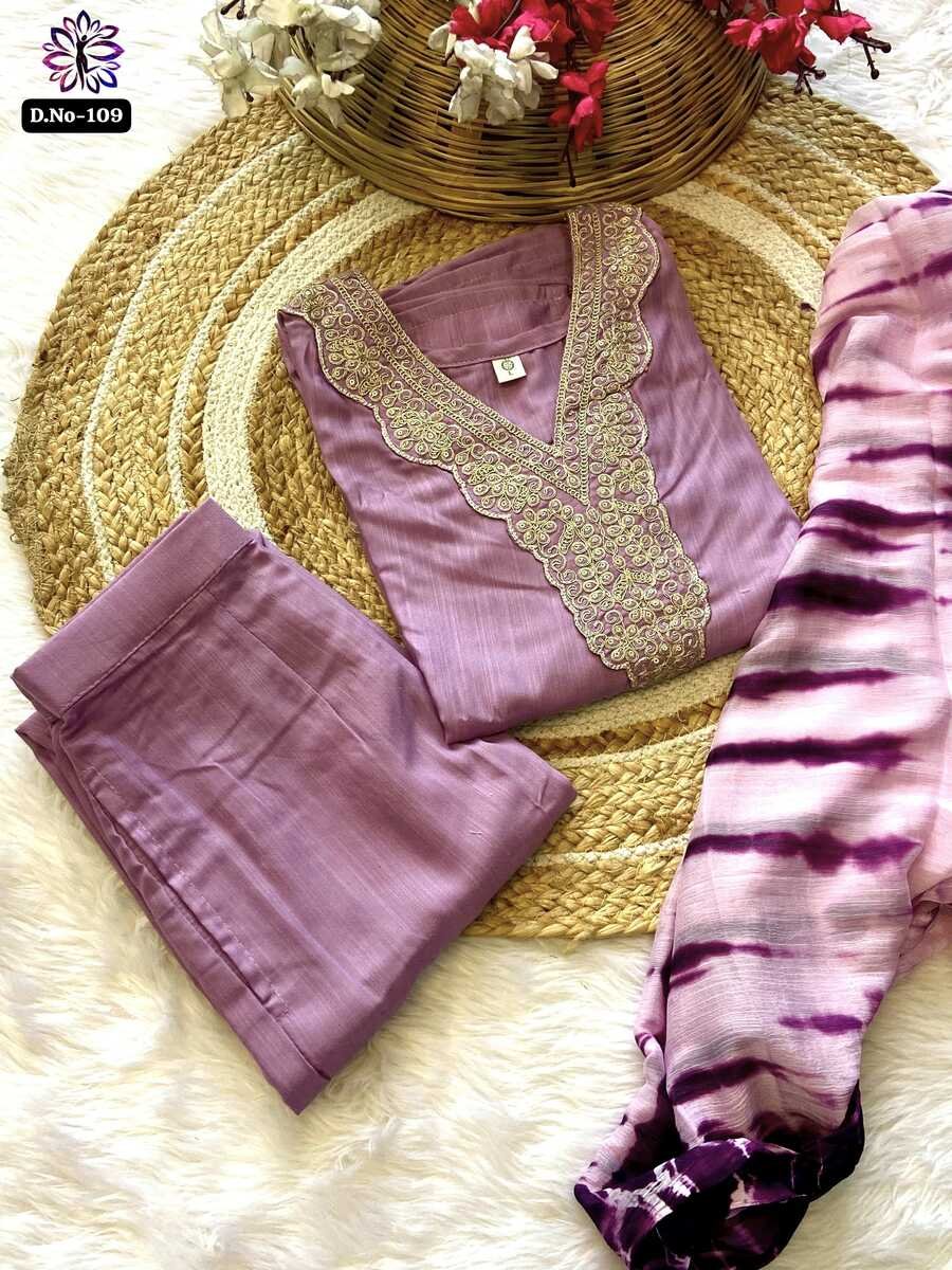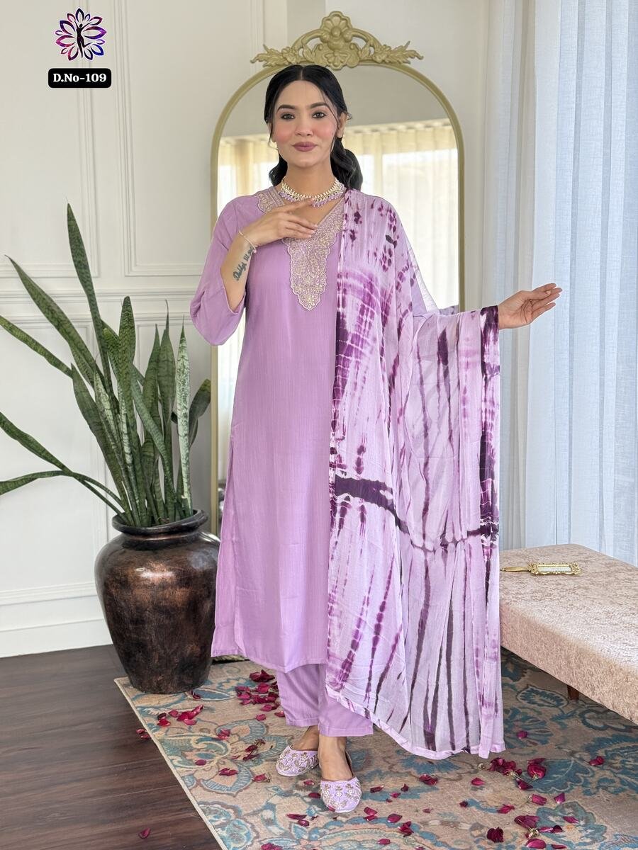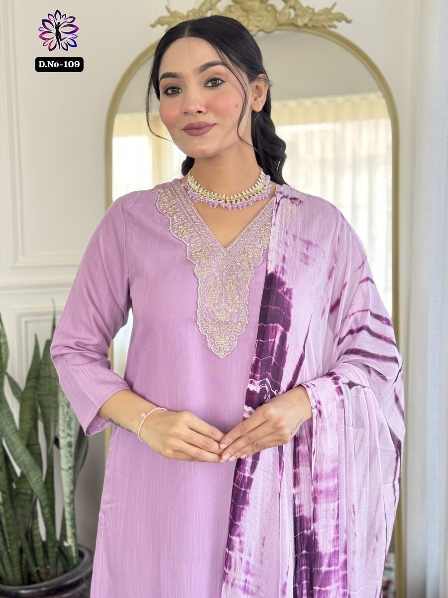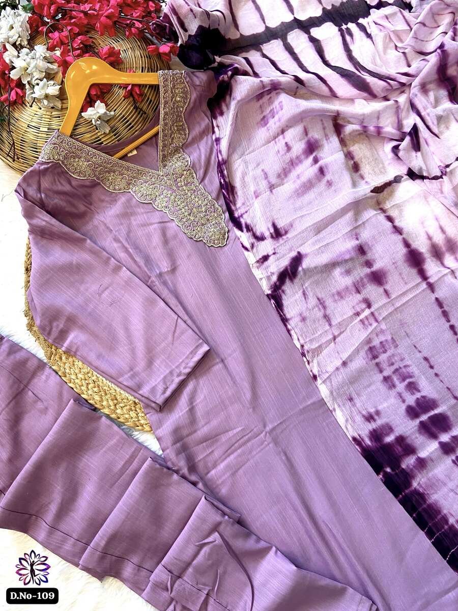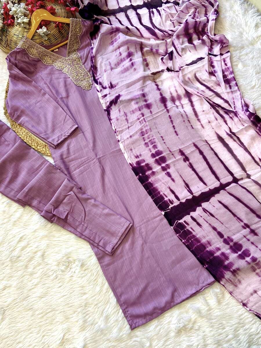 MOST PICKED MAGIC SLUB EMBROIDERY WORK TOP BOTTOM WITH DUPATTA LAVENDER