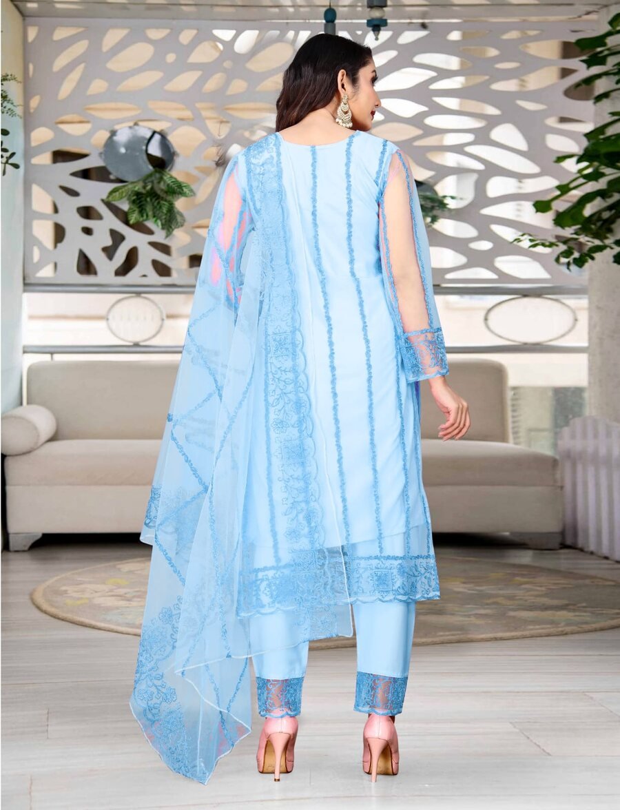 MOST PICKED NET EMBROIDERY WORK TOP BOTTOM WITH DUPATTA SKY