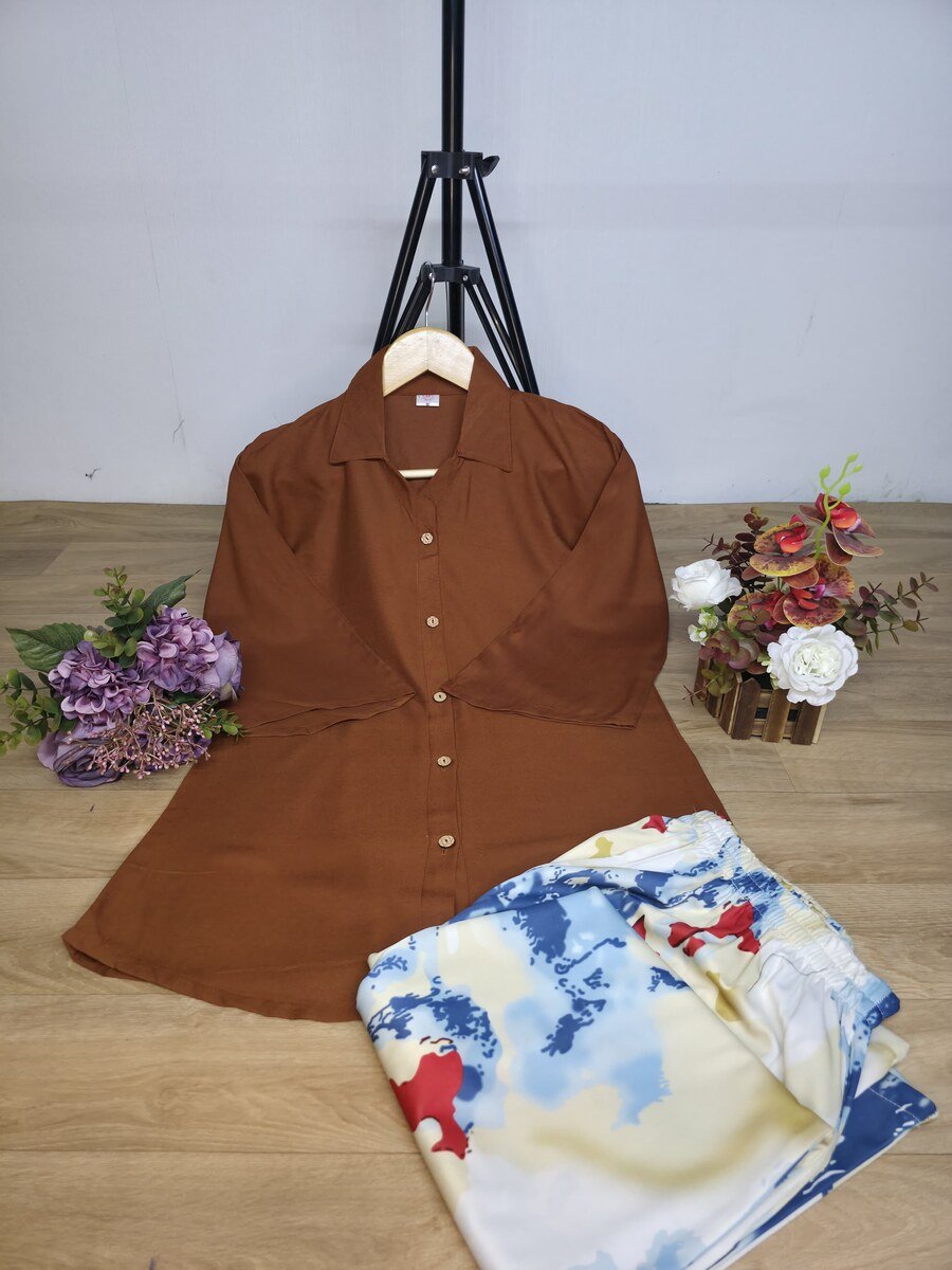 MOST PICKED RAYON DIGITAL PRINTED TOP WITH PALAZZO BROWN