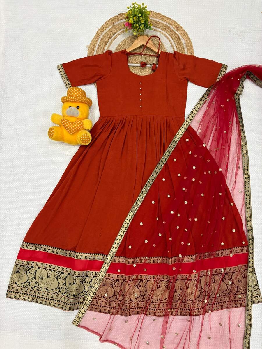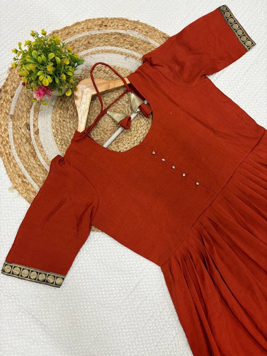 MOST PICKED VICHITRA SILK JACQUARD WORK ANARKALI TOP WITH DUPATTA ORANGE