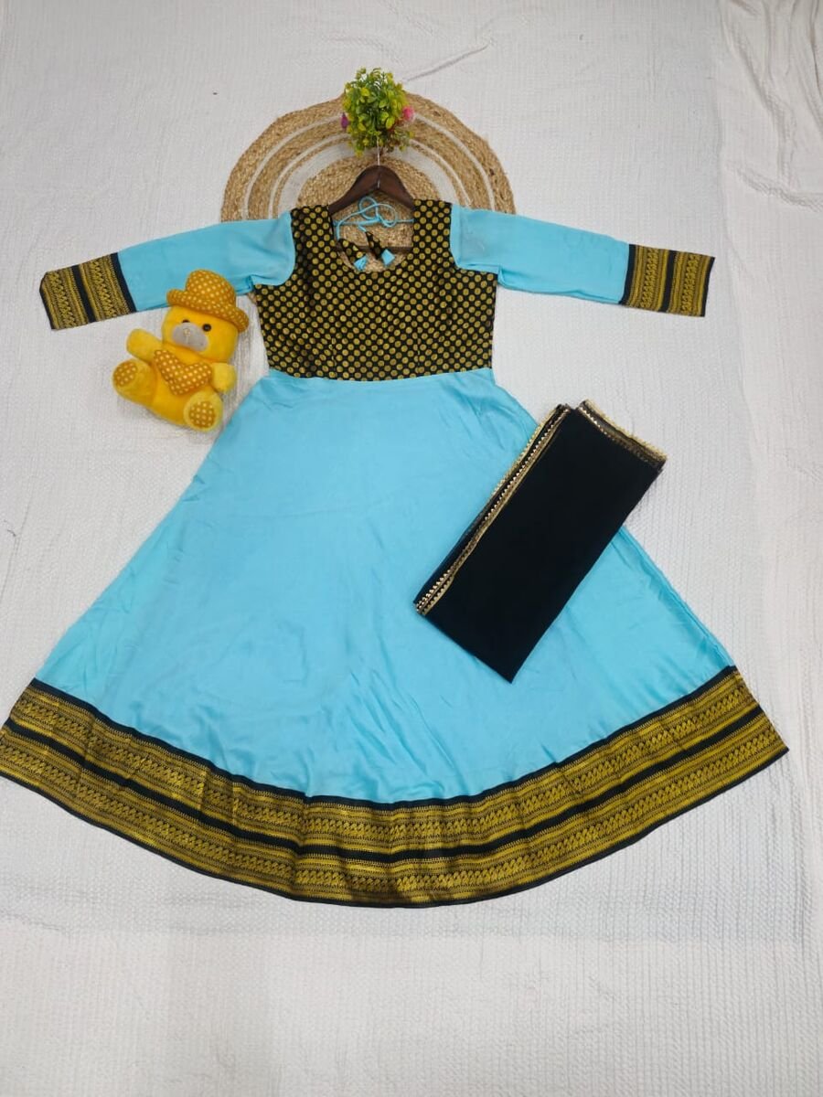 MOST PICKED VICHITRA SILK JACQUARD WORK ANARKALI TOP WITH DUPATTA SKY
