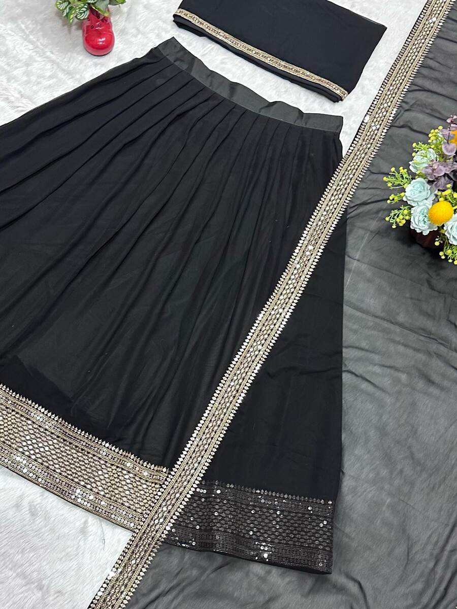 FABRIC & WORK :- DYABLE FAUX BLOOMING WITH 7MM SEQUENCE EMBROIDERED WORK CHOLI 16 INCH AND LACE