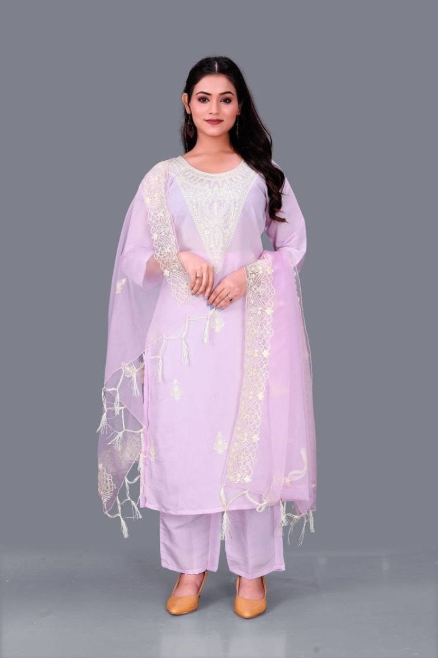 NEW ARRIVAL CHANDERI COTTON EMBROIDERY WORK TOP BOTTOM WITH DUPATTA BABY PINK