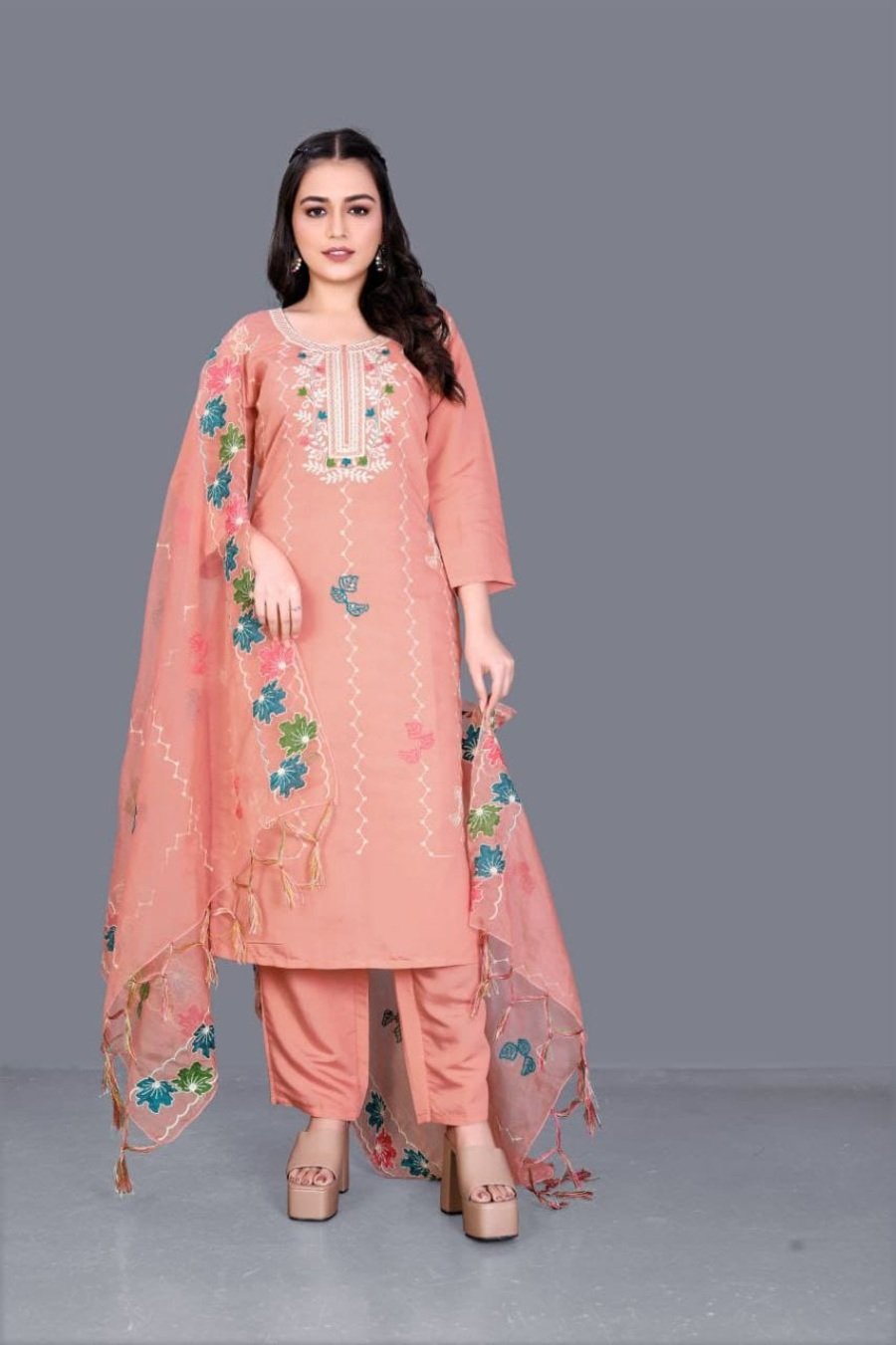 TOP FABRIC : CHANDERI COTTON WITH EMBROIDERY WORK