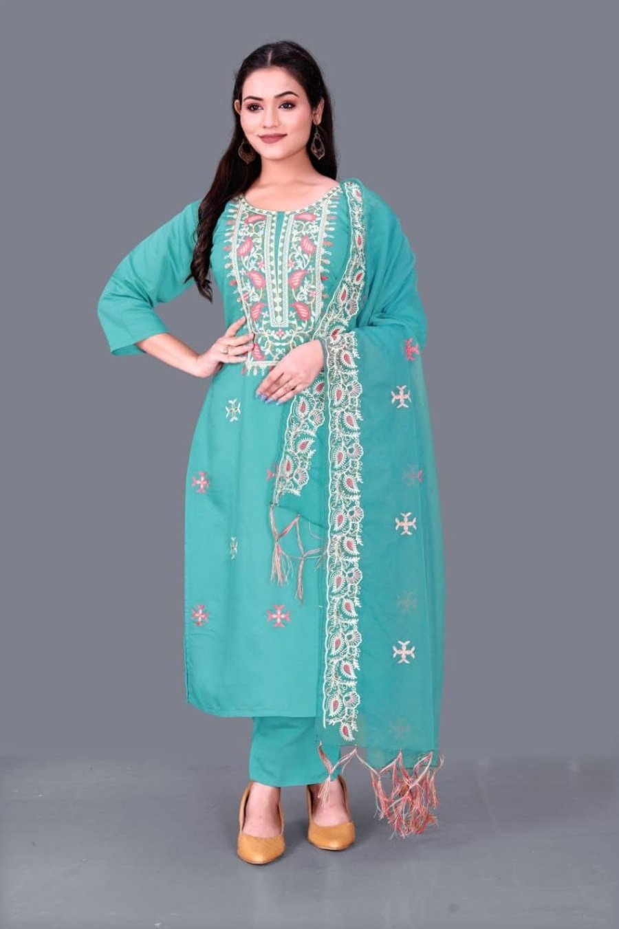 TOP FABRIC : CHANDERI COTTON WITH EMBROIDERY WORK