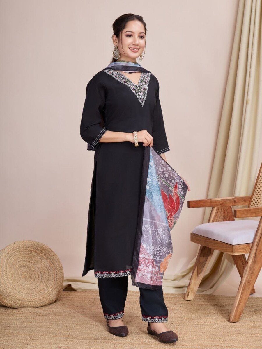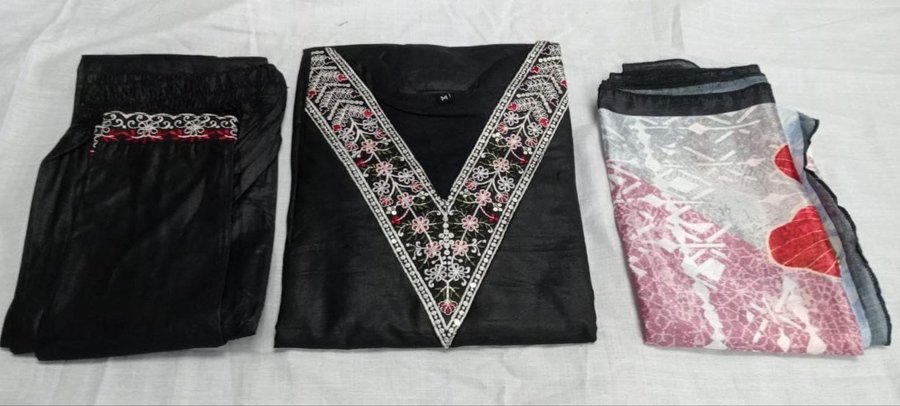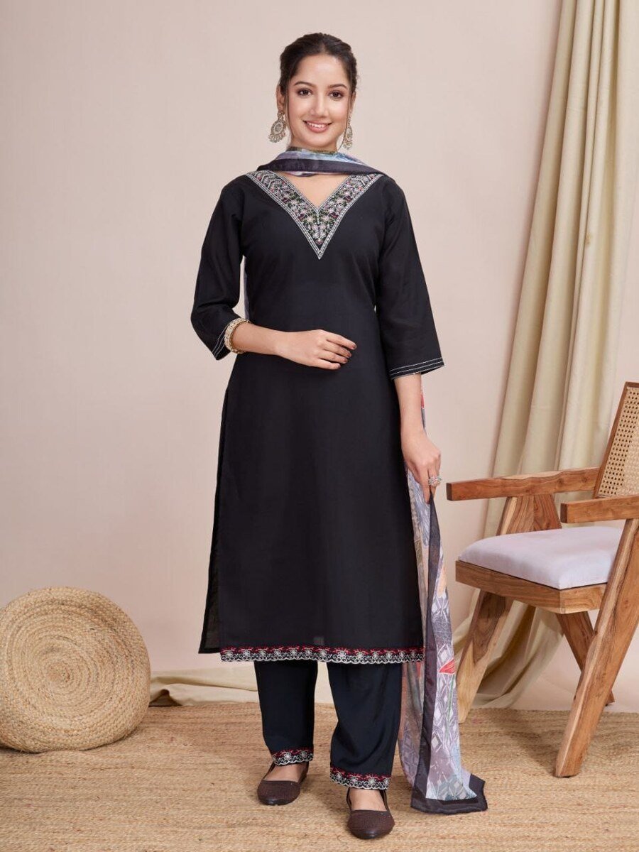 NEW ARRIVAL CHANDERI EMBROIDERY WORK TOP BOTTOM WITH DUPATTA BLACK