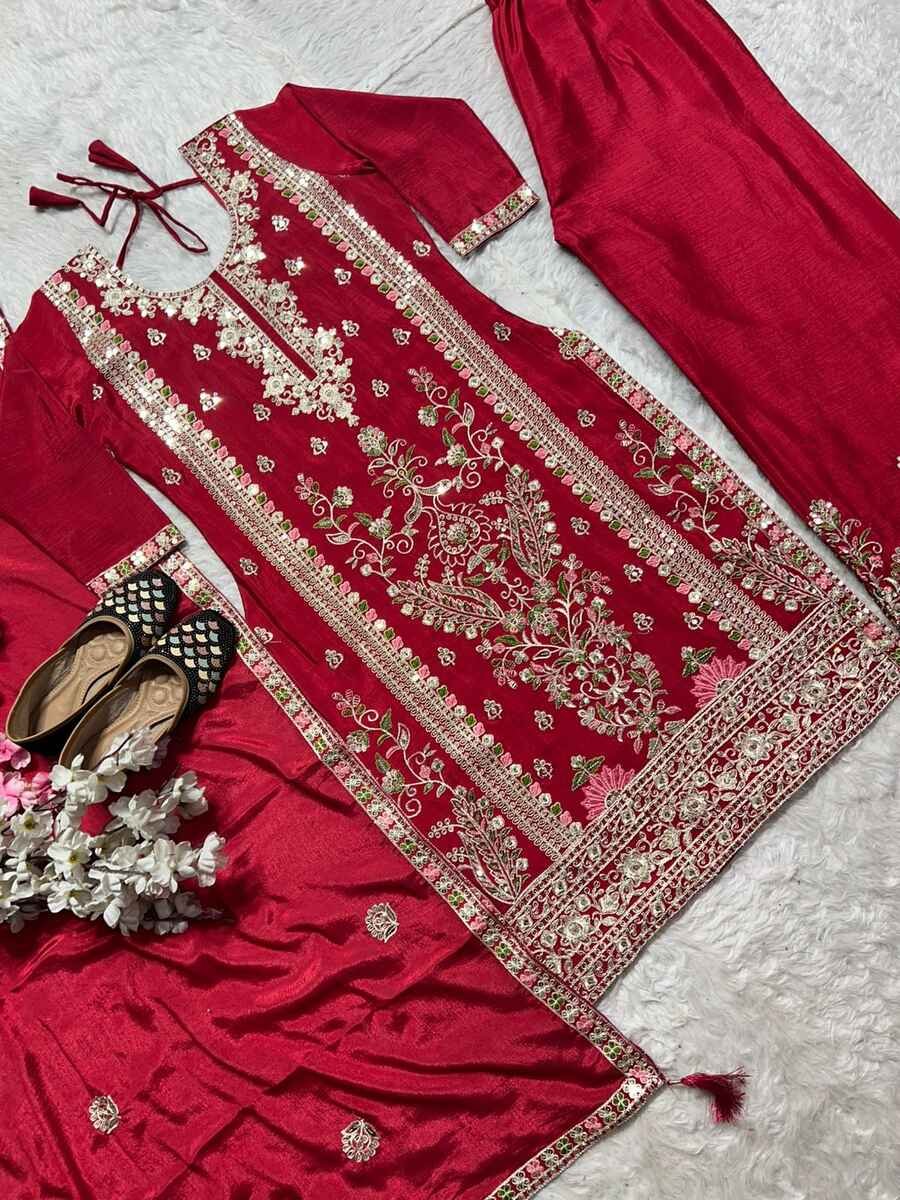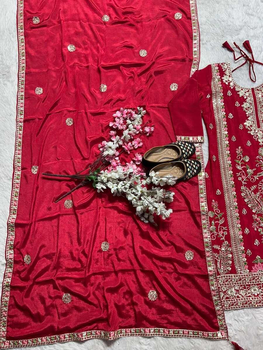 TOP FABRIC :- PURE HEAVY CHINON SILK WITH HEAVY EMBROIDERY CODING SEQUENCE WORK WITH FULL EMBROIDERY SLEEVE