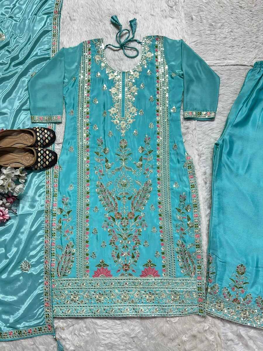 TOP FABRIC :- PURE HEAVY CHINON SILK WITH HEAVY EMBROIDERY CODING SEQUENCE WORK WITH FULL EMBROIDERY SLEEVE