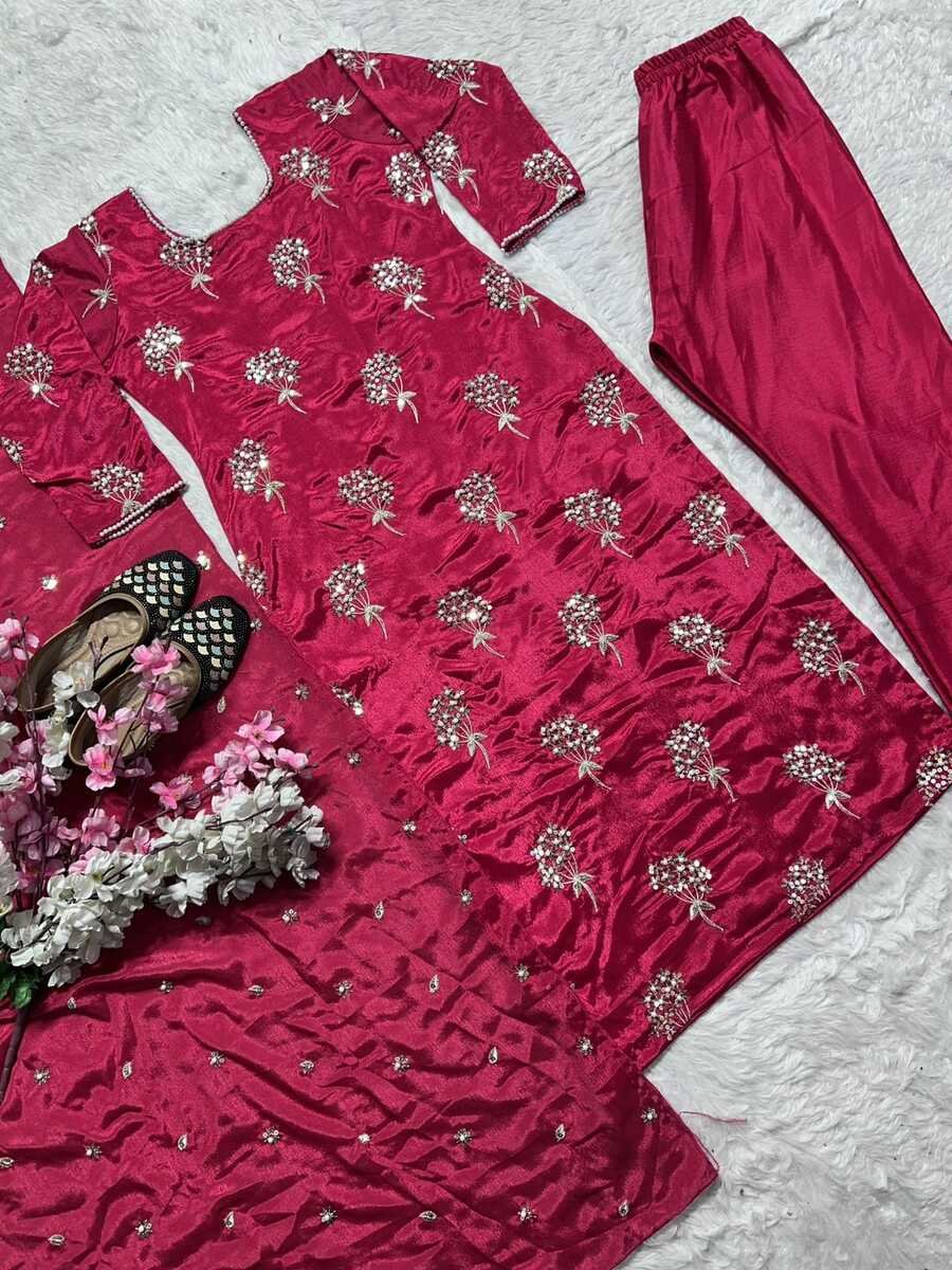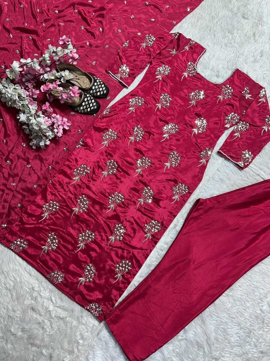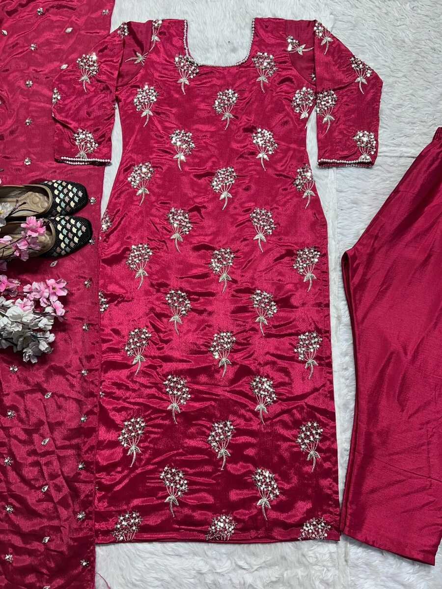 DUPATTA :- CHINON FABRIC MATERIAL WITH HEAVY EMBROIDERY 5MM SEQUENCE WORK