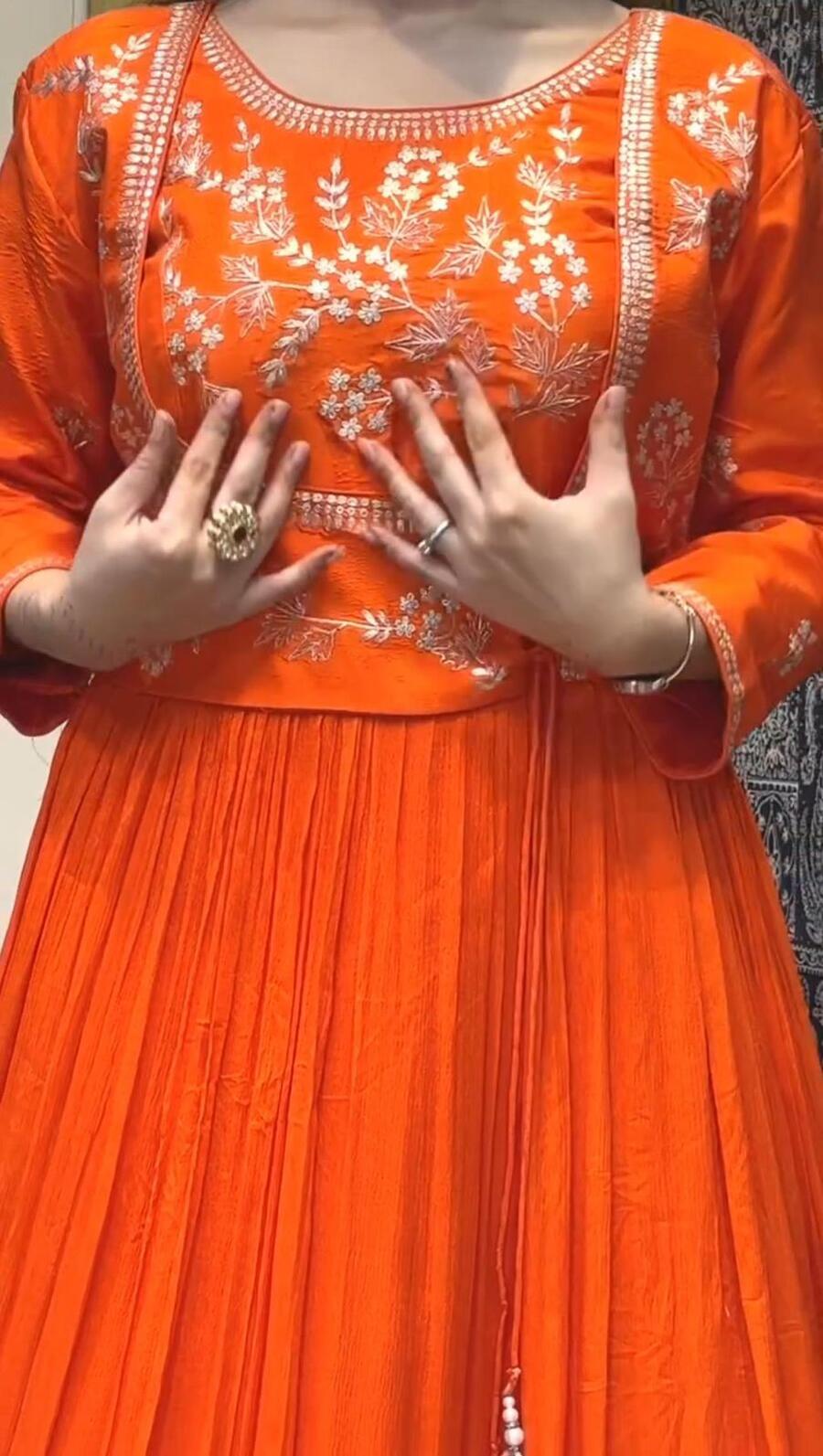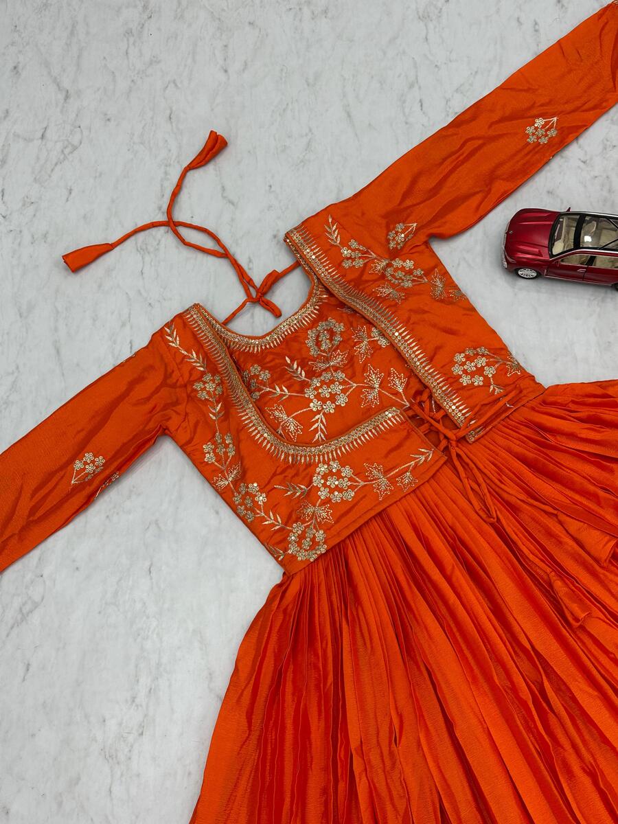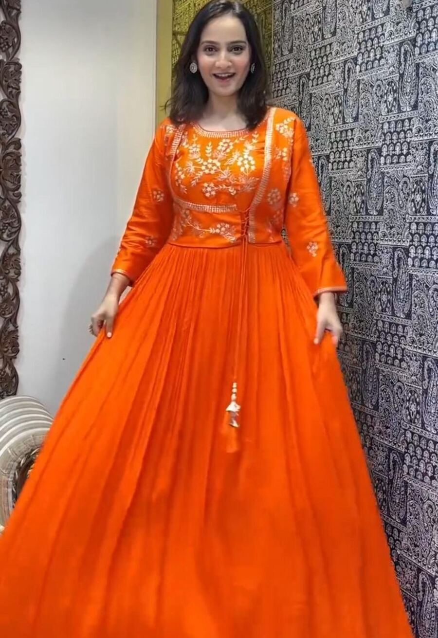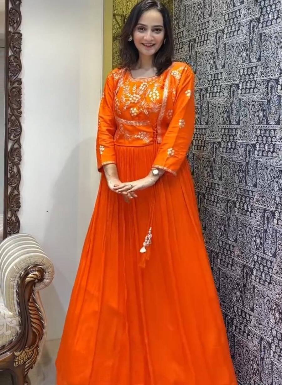 NEW ARRIVAL CHINON EMBROIDERY SEQUENCE WORK GOWN ORANGE