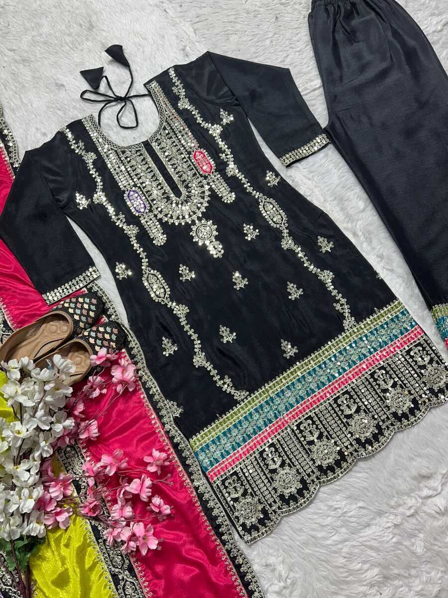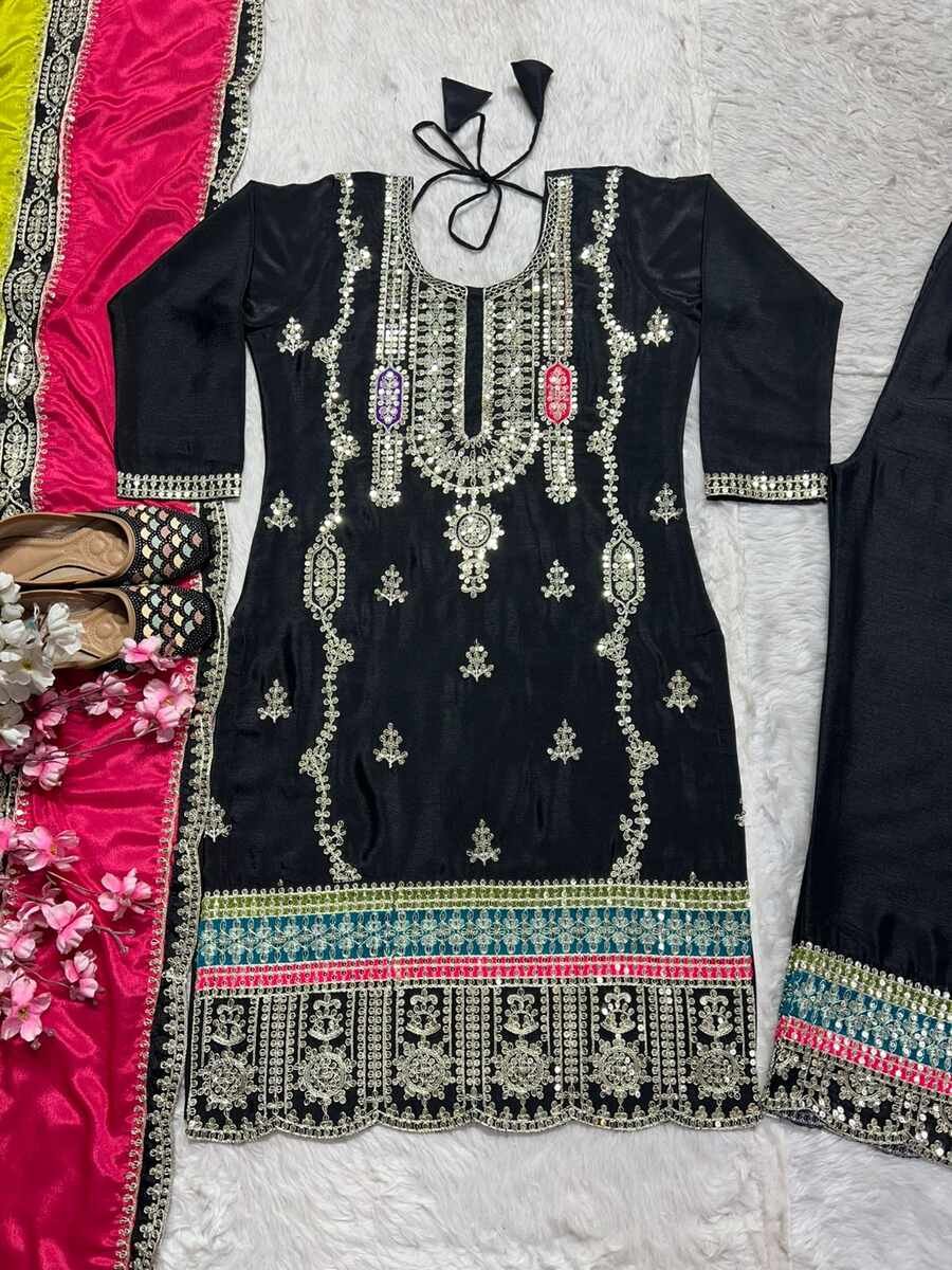 TOP FABRIC :- PURE HEAVY CHINON SILK WITH HEAVY EMBROIDERY CODING SEQUENCE WORK WITH FULL EMBROIDERY SLEEVE