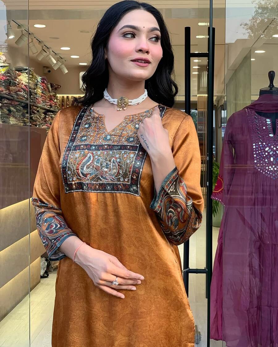 WORK :- DIGITAL PRINT WITH REAL MIRROR AND DIAMOND HANDWORK WITH FULL SLEEVE