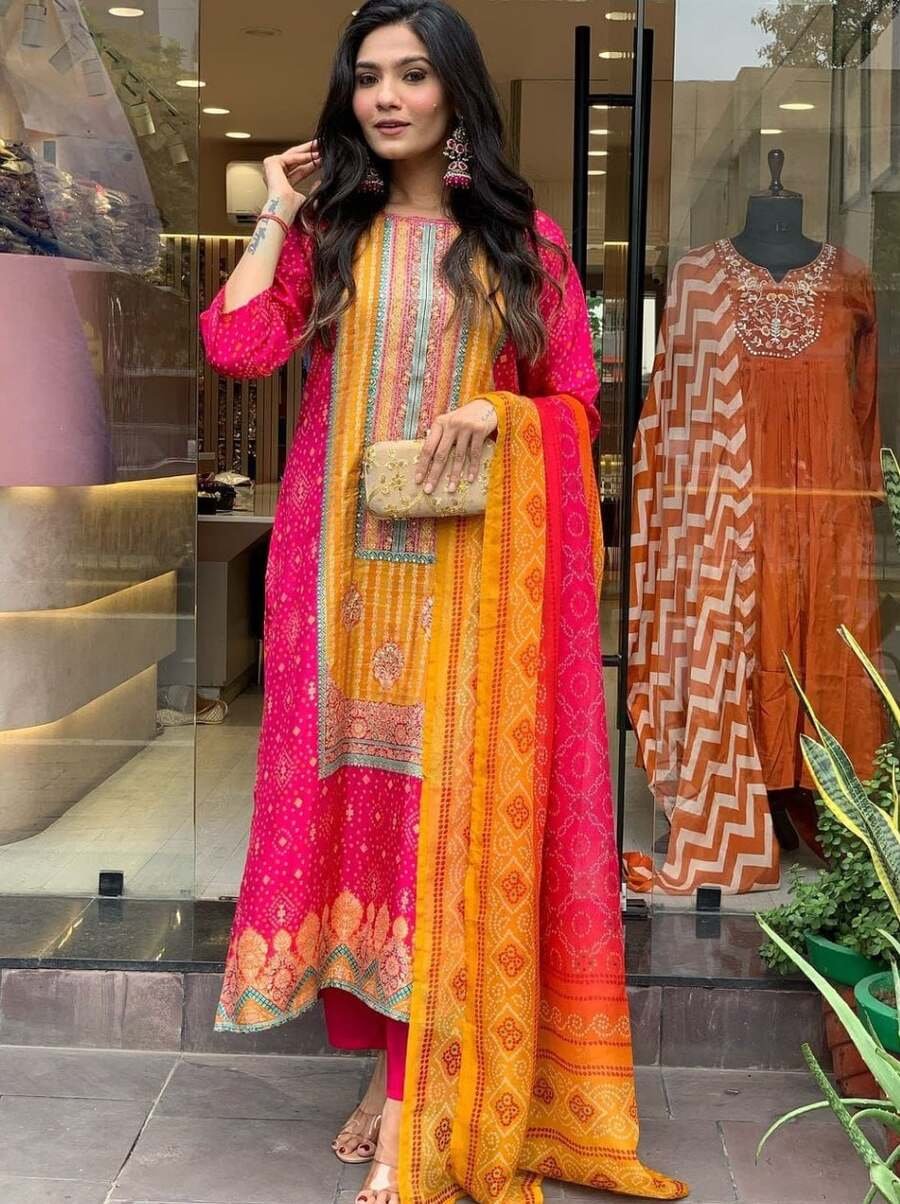 WORK :- DIGITAL PRINT WITH REAL MIRROR AND DIAMOND HANDWORK (FULL SLEEVE)