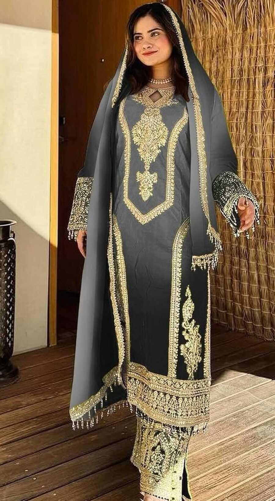 NEW ARRIVAL CHINON SILK DUAL TONE WITH EMBROIDERY SEQUENCE AND CODING WORK TOP PALAZZO WITH DUPATTA GREY