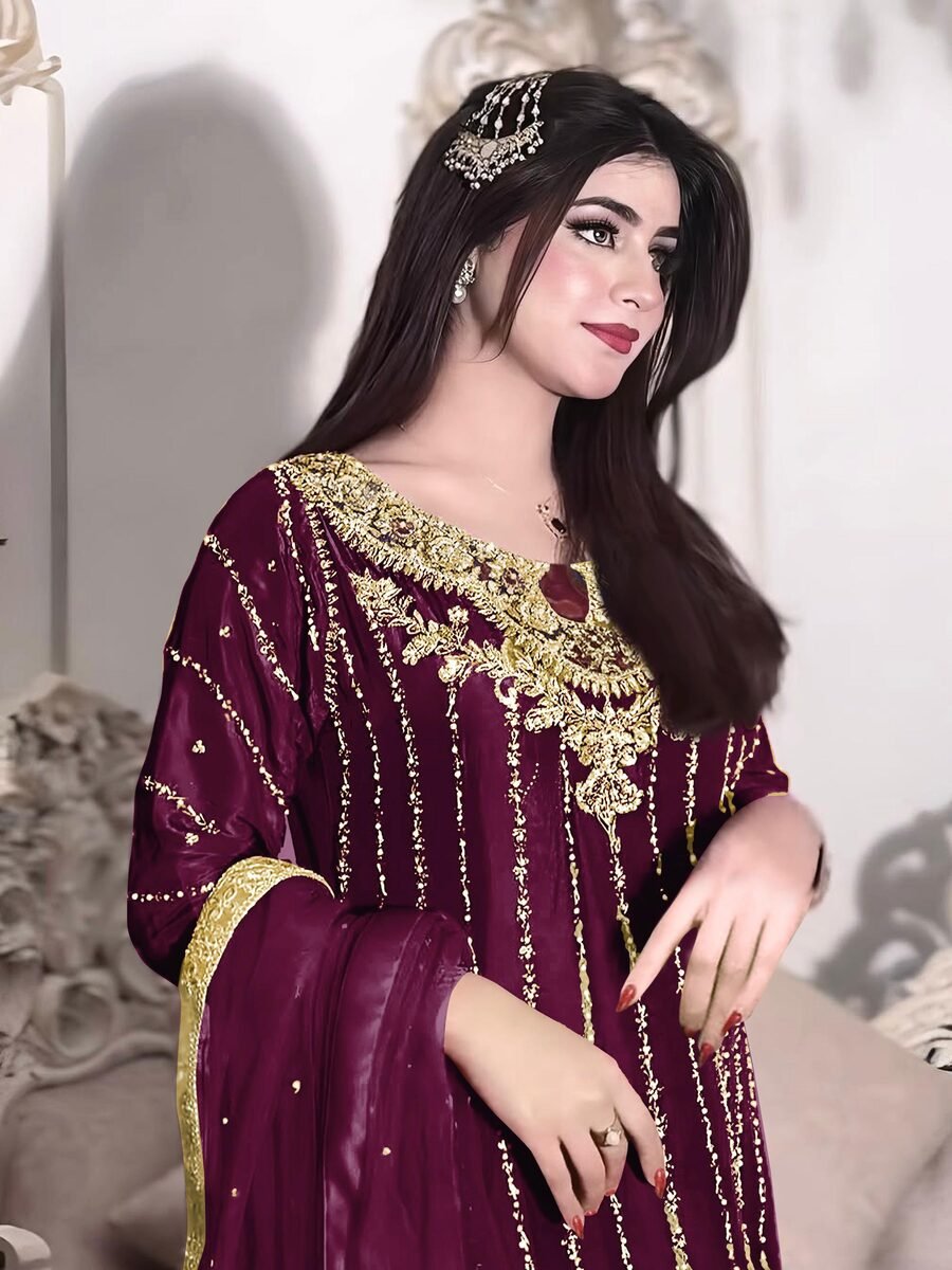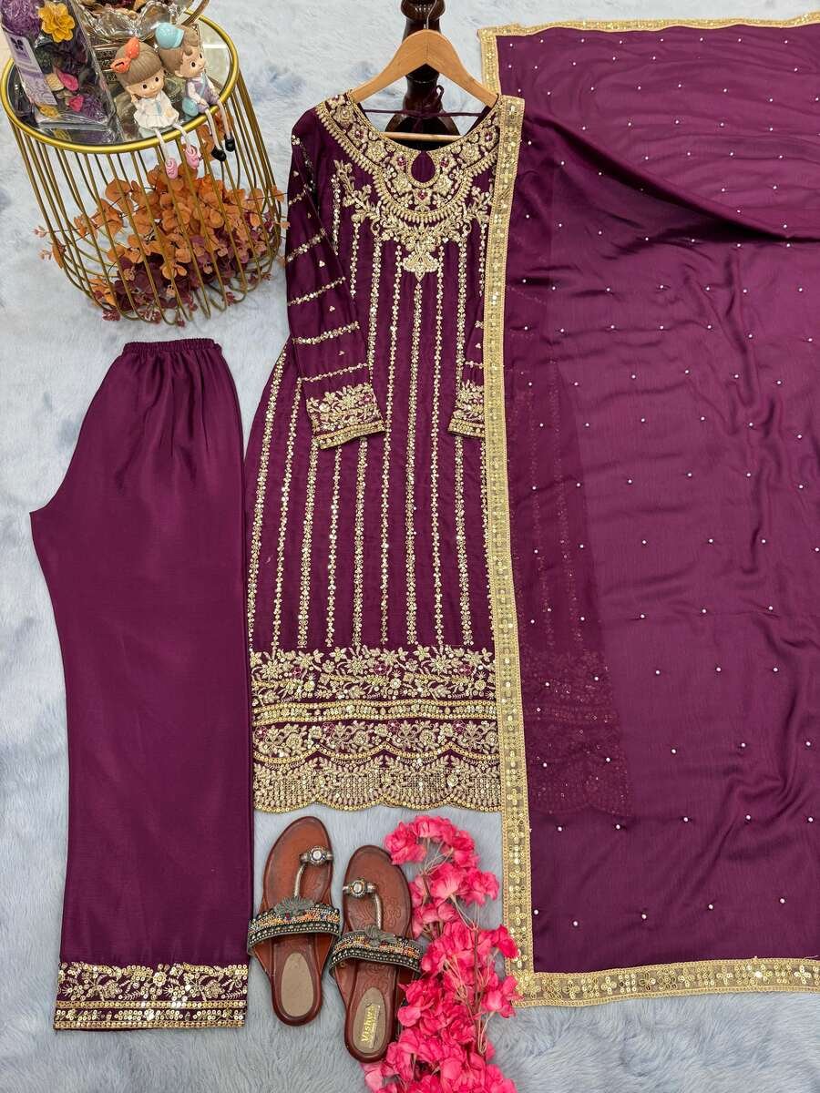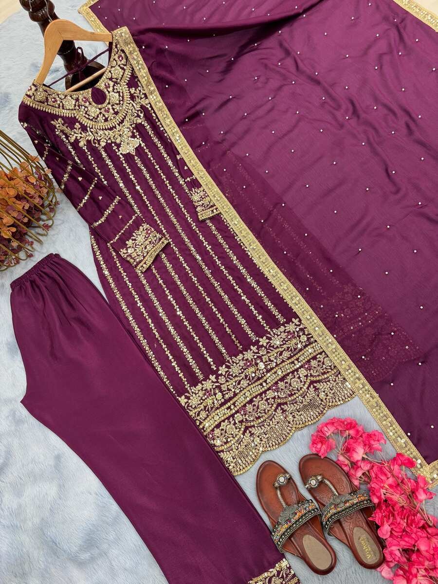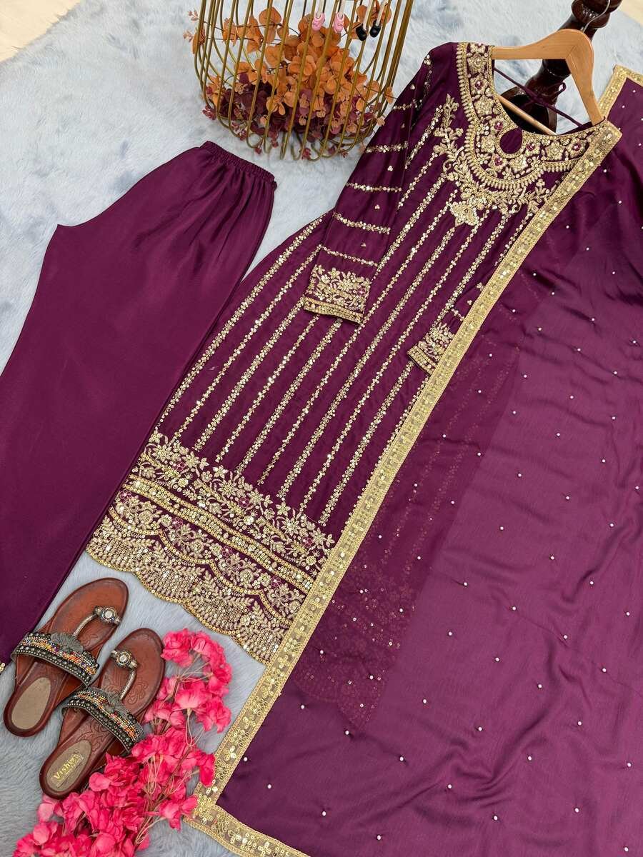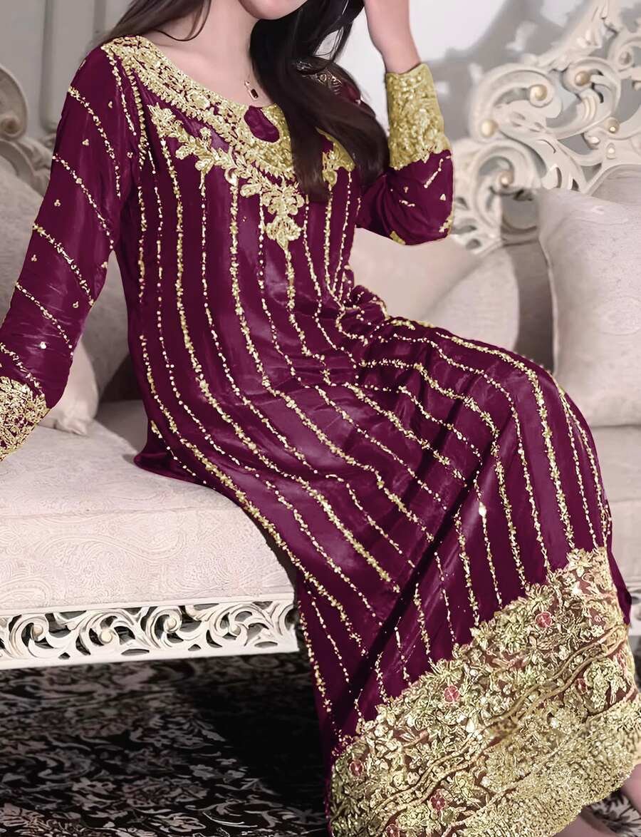 FABRIC : HEAVY CHINON SILK WITH EMBROIDERY 5 MM SEQUENCE WORK WITH ELASTIC