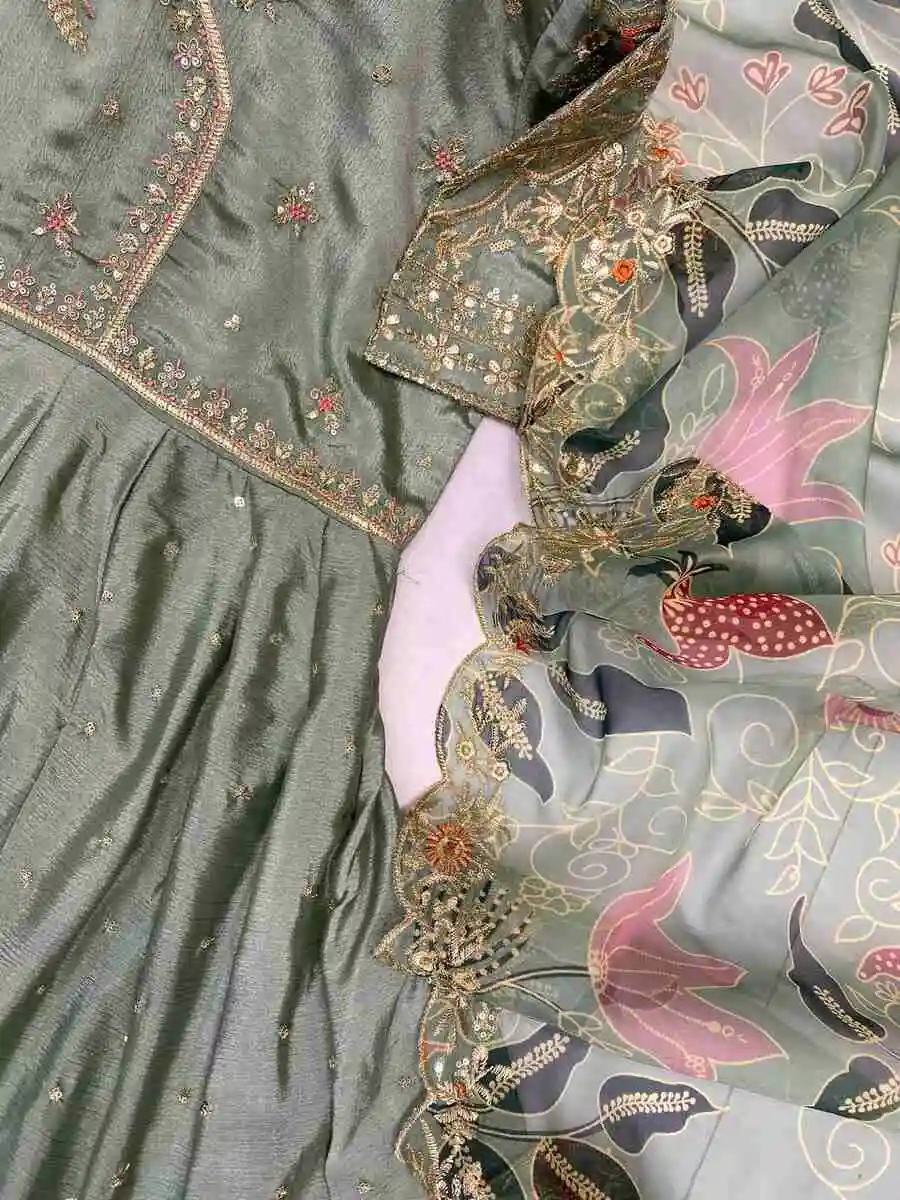 WORK : PRINTED WITH SEQUENCE EMBROIDERY WORK ON BORDER