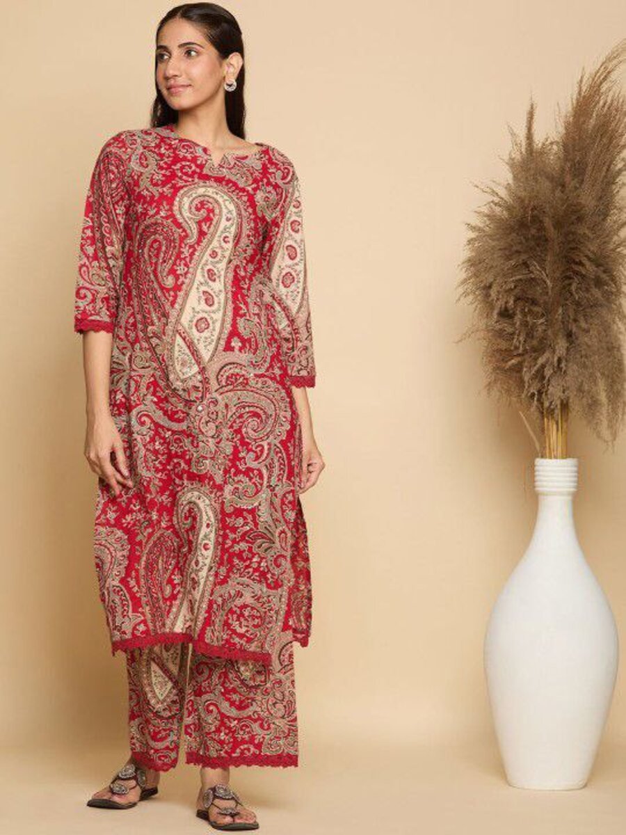 NEW ARRIVAL COTTON DIGITAL PRINT WORK TOP BOTTOM SET RED