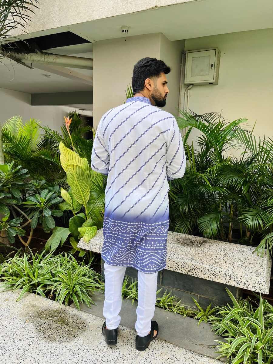 NEW ARRIVAL COTTON LEHERIYA PATTERN WITH BANDHNI DAMAN PRINT WORK MEN’S KURTA PAYJAMA LAVENDER