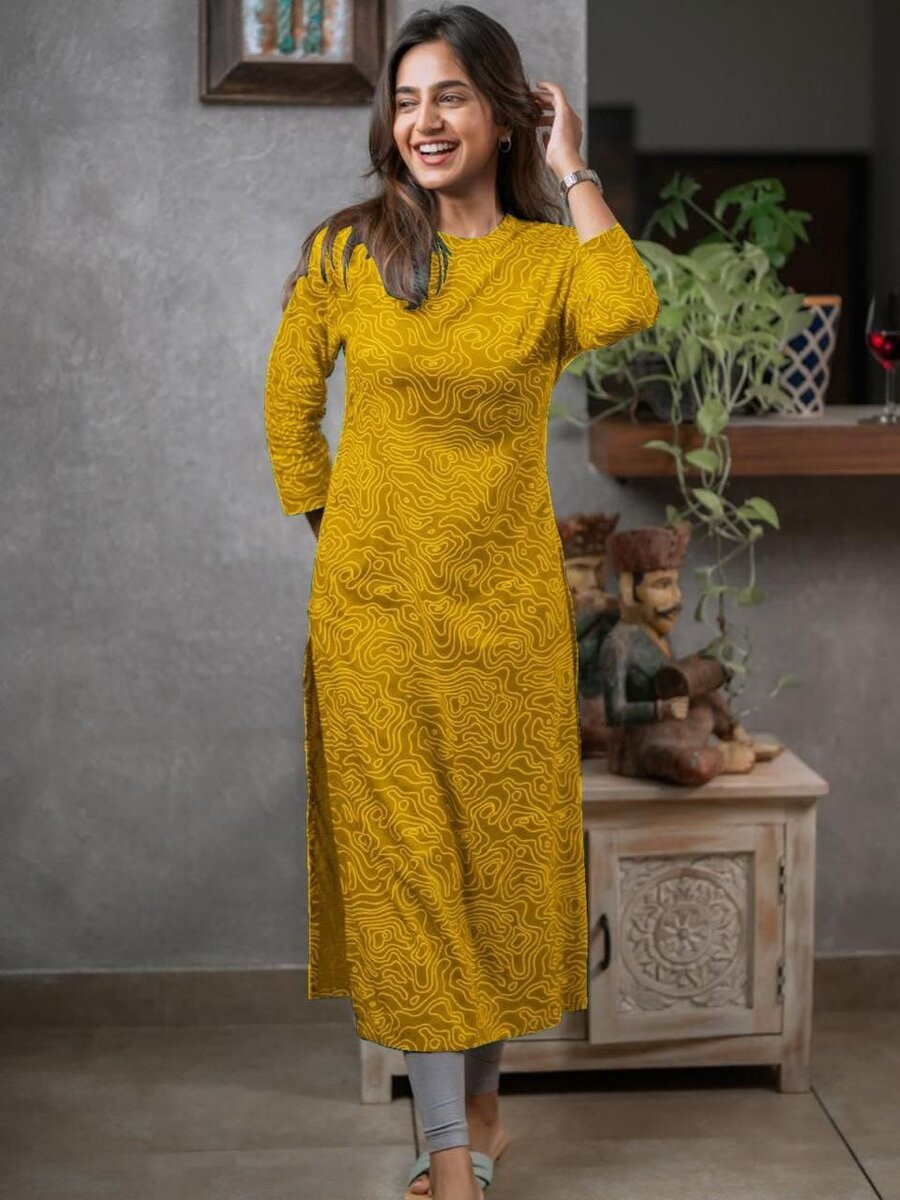 NEW ARRIVAL COTTON PRINTED KURTI YELLOW