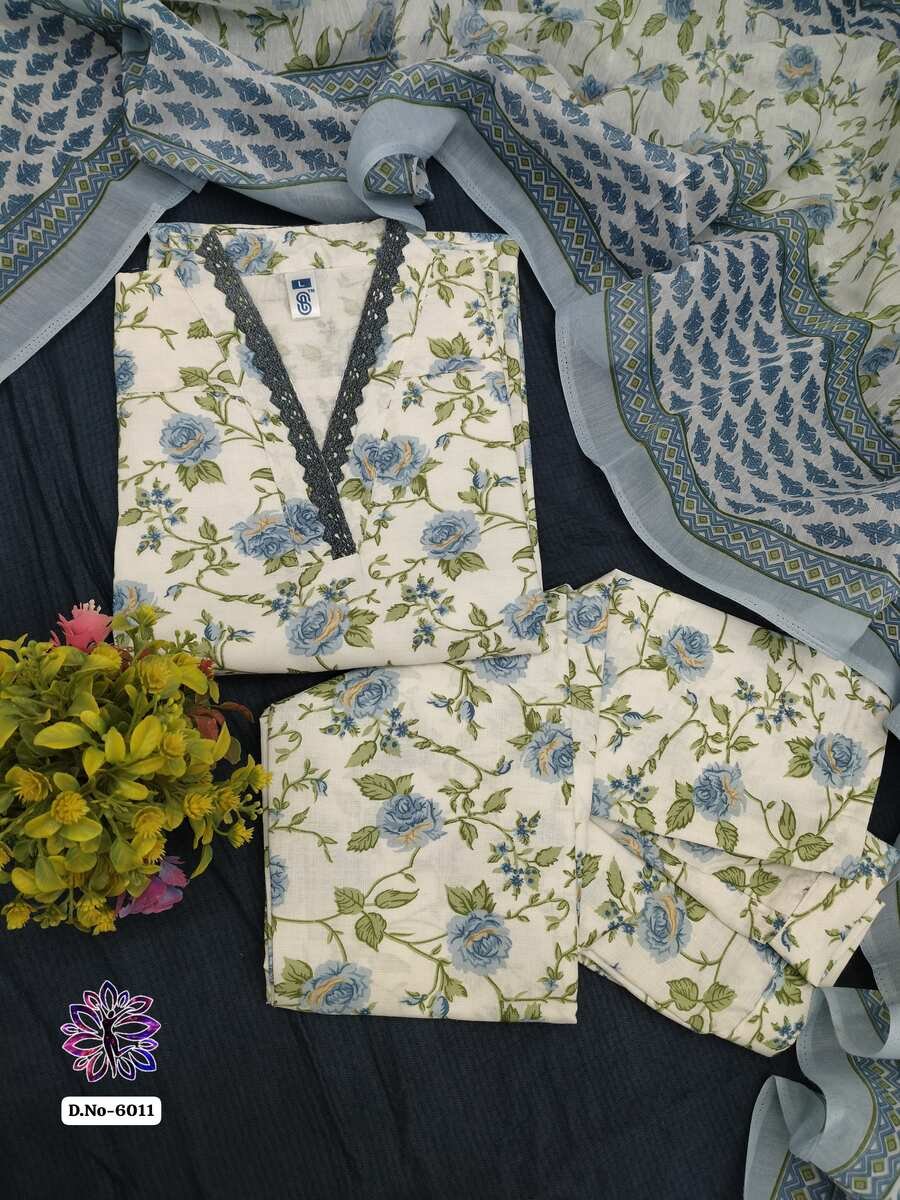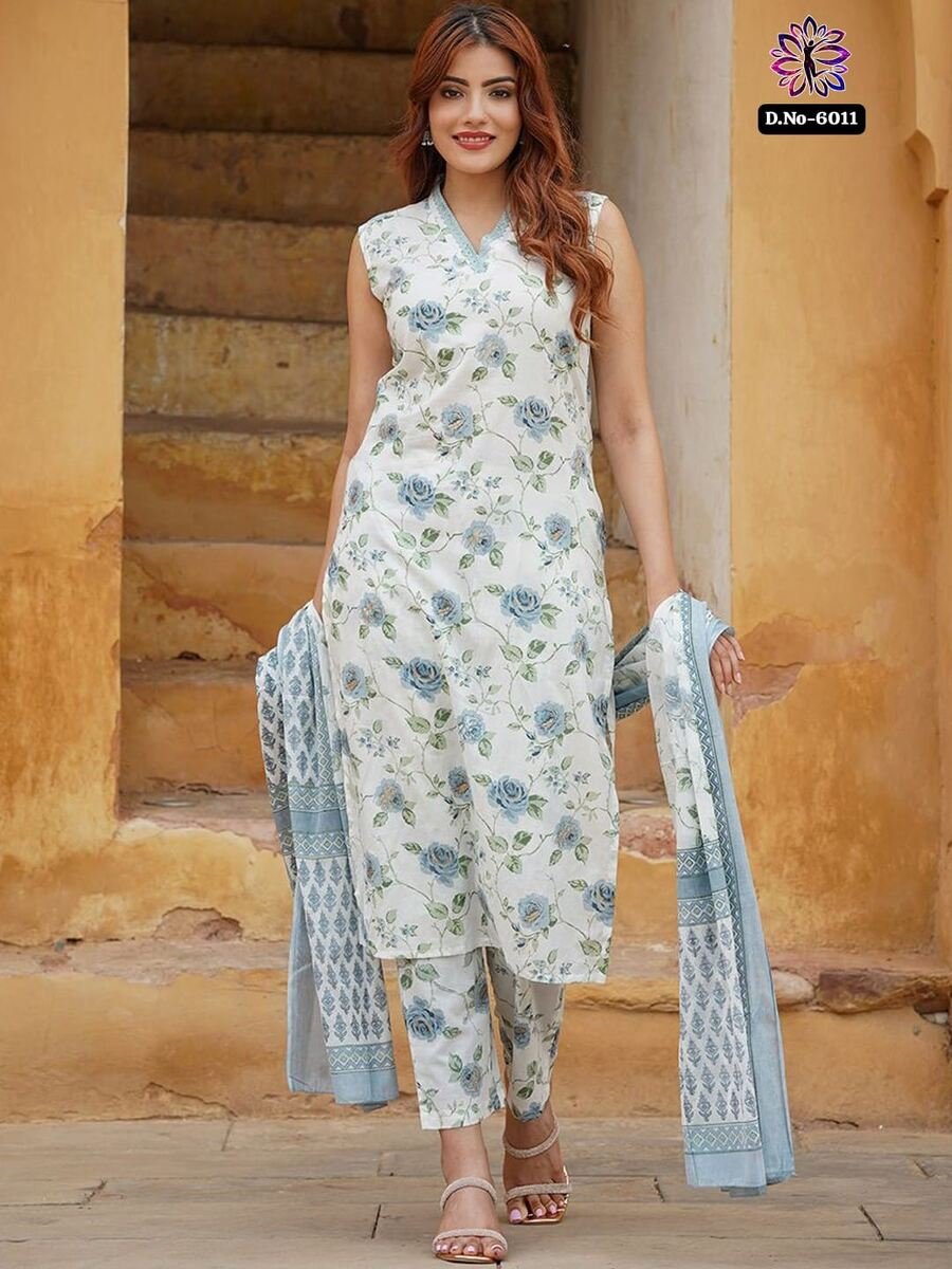 NEW ARRIVAL COTTON PRINTED LACE WORK SLEEVELESS TOP BOTTOM WITH DUPATTA SKY