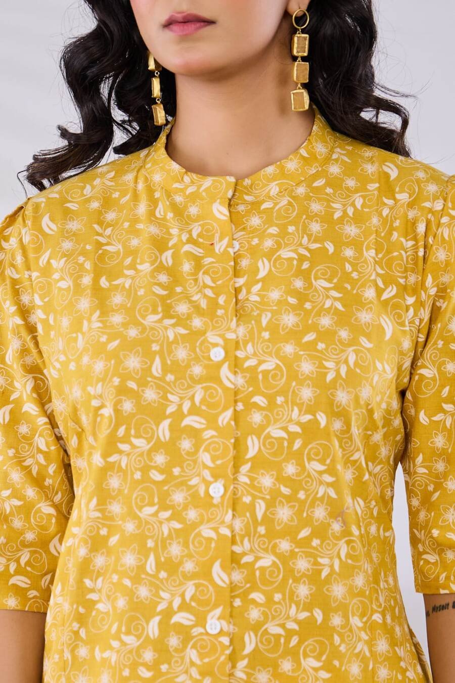 NEW ARRIVAL COTTON PRINTED TOP PENT SET YELLOW