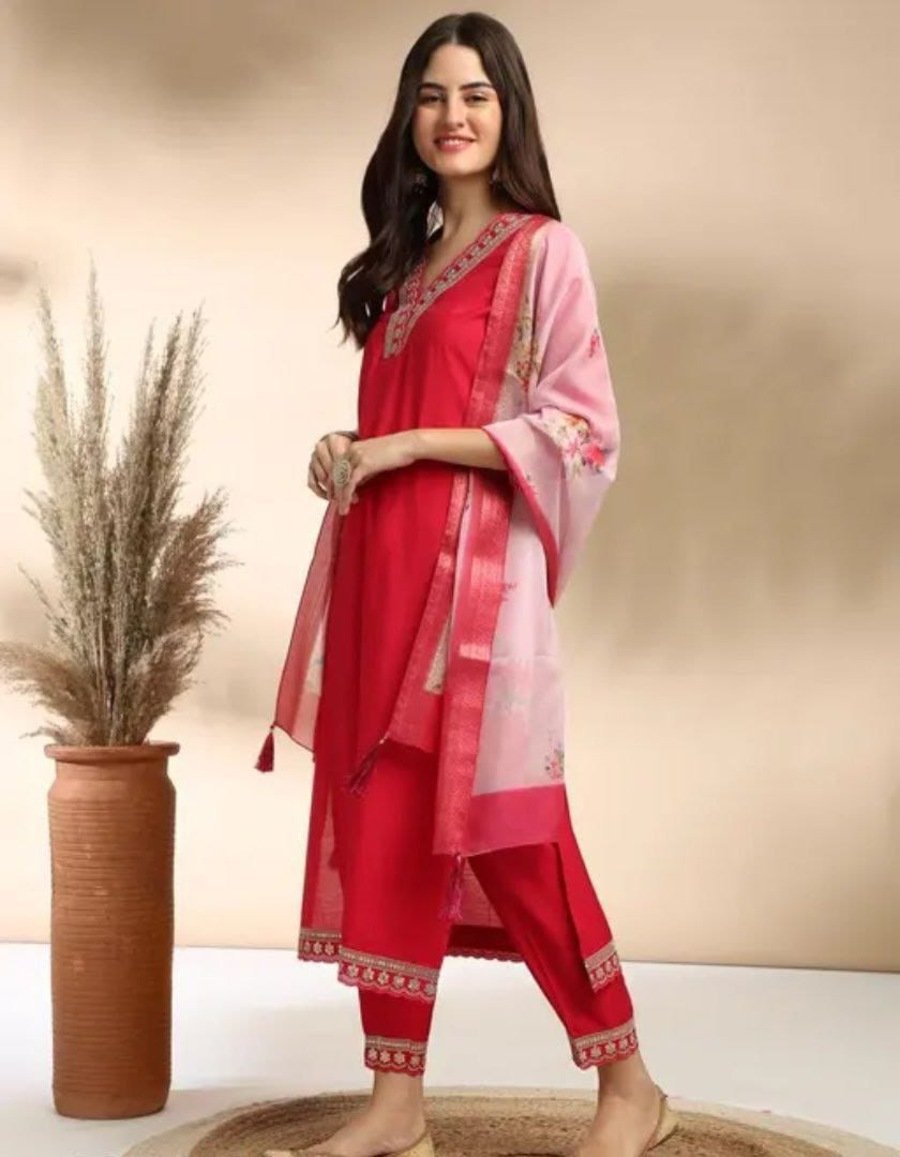 NEW ARRIVAL COTTON SLUB SEQUENCE EMBROIDERY WORK TOP BOTOM WITH DUPATTA RANI