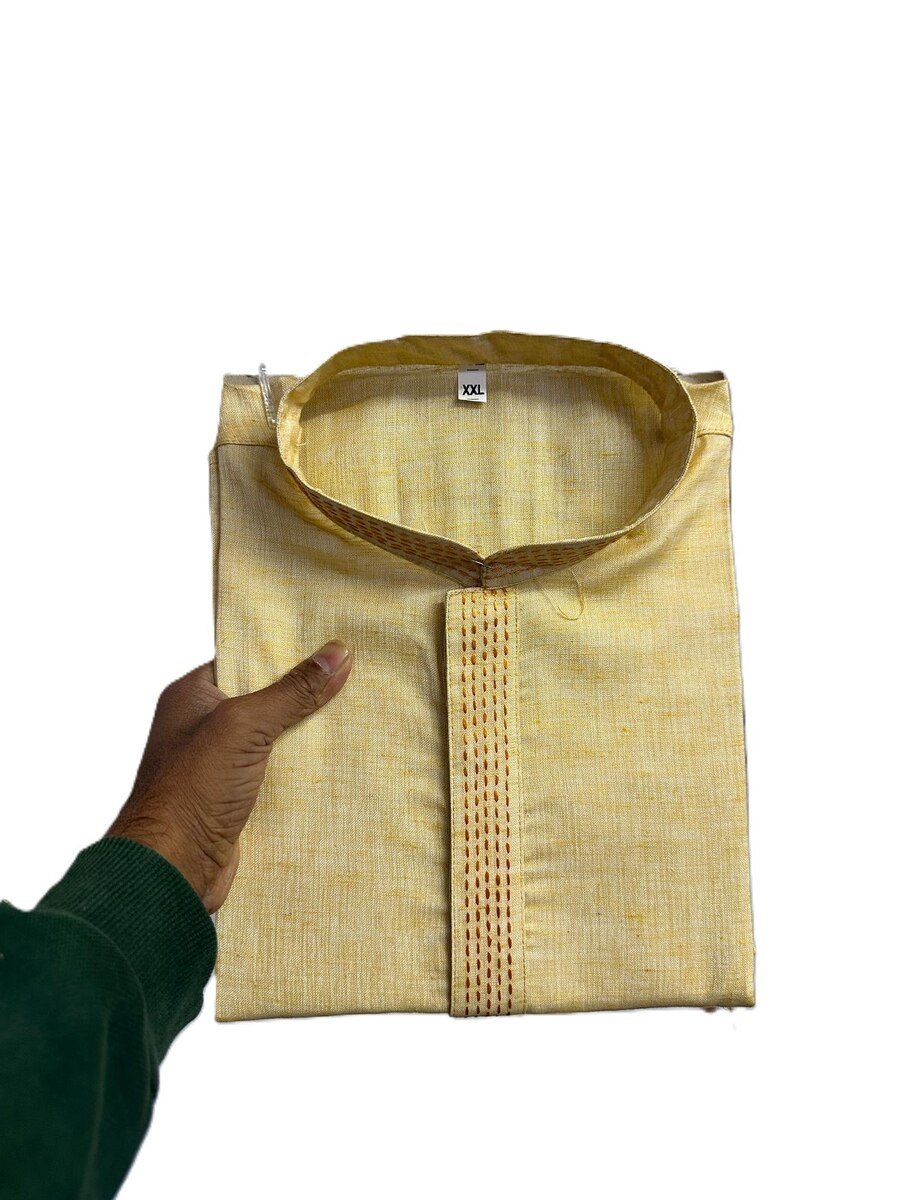 NEW ARRIVAL COTTON THREAD WORK MEN’S KURTA PAYJAMA YELLOW