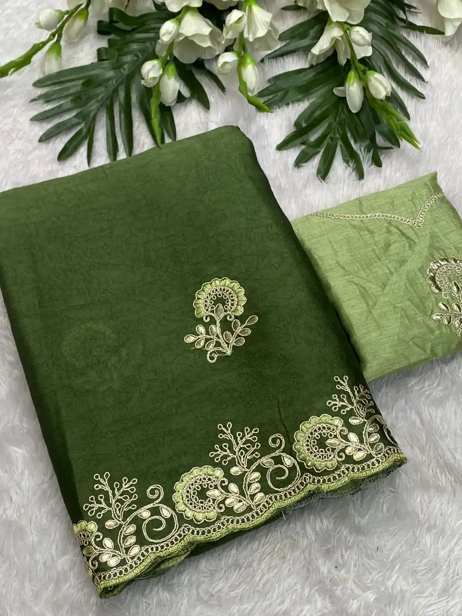 WORK : BEAUTIFUL MULTI CODING DAGA & GOTA EMBROIDERY WORK BORDER WITH CONTRAST PALLU WORK