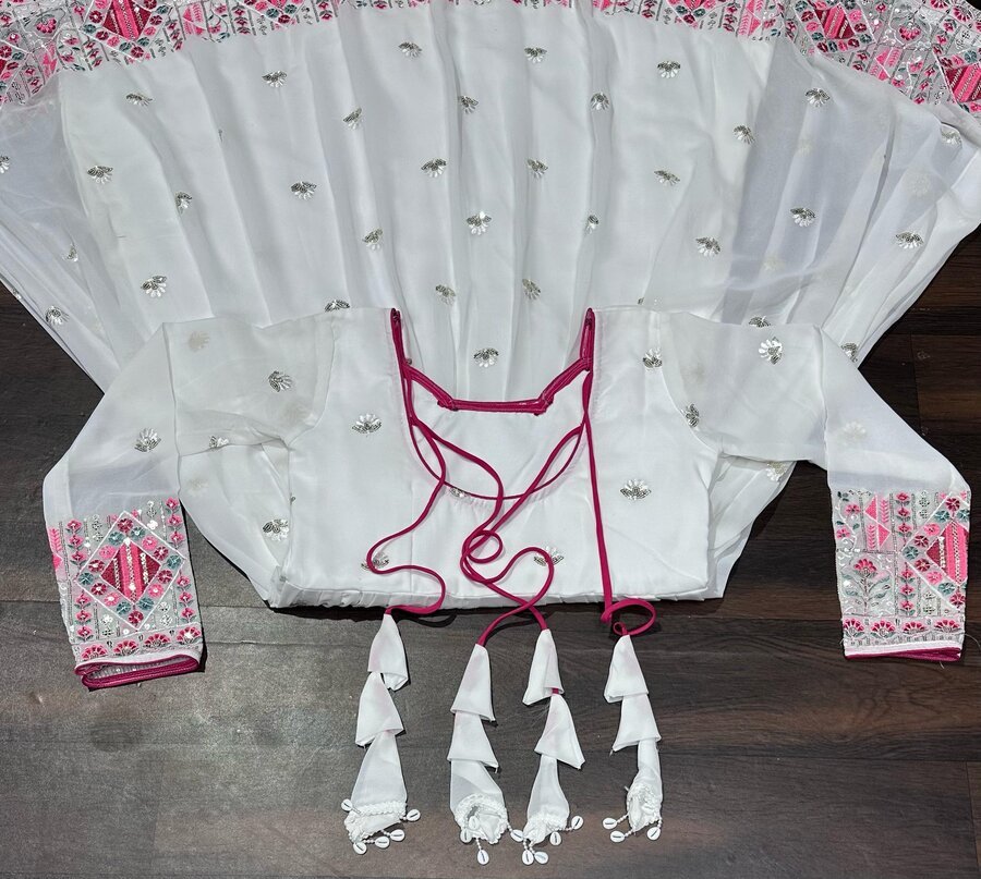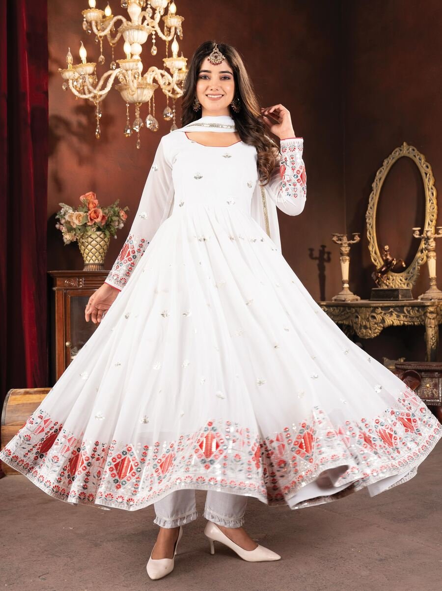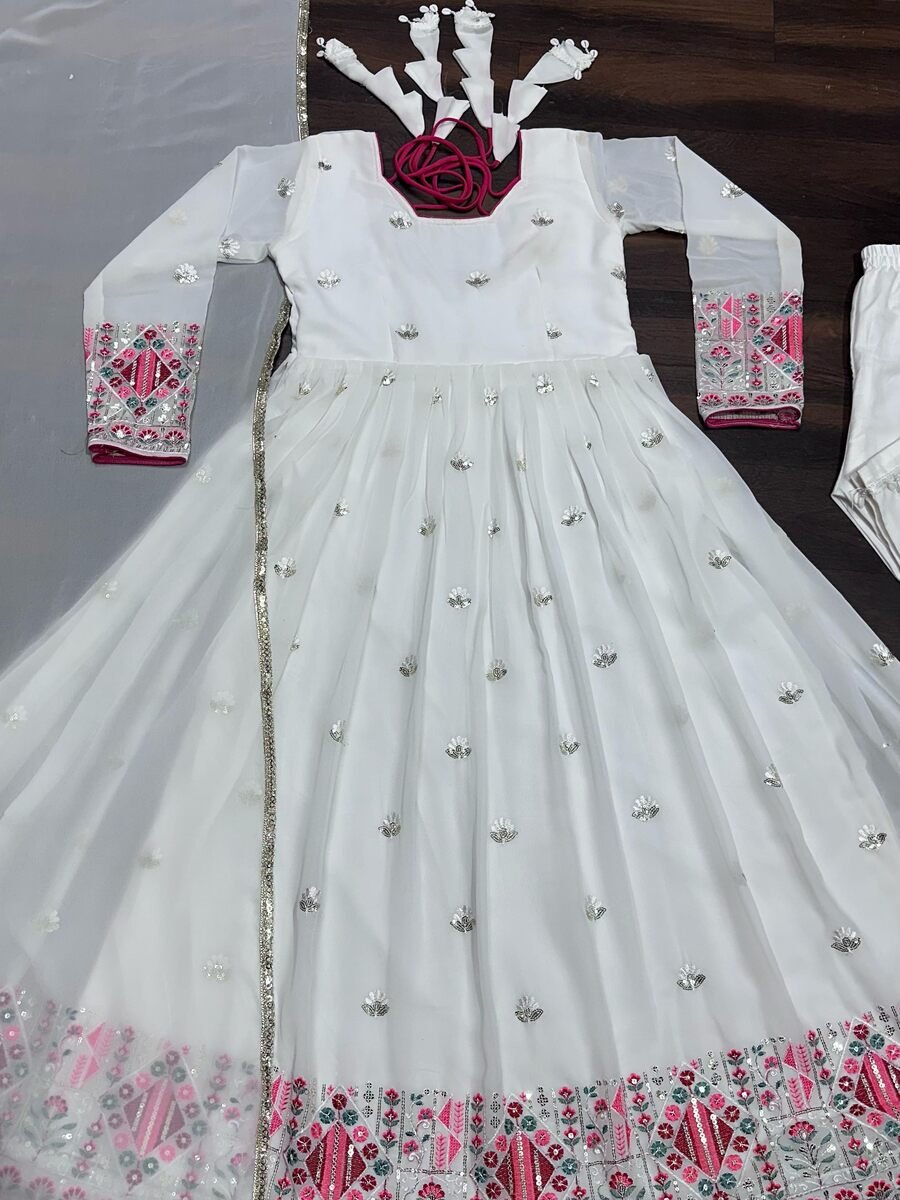 NEW ARRIVAL FAUX BLOOMING SEQUENCE AND MULTI THREAD EMBROIDERY WORK GOWN BOTTOM WITH DUPATTA WHITE
