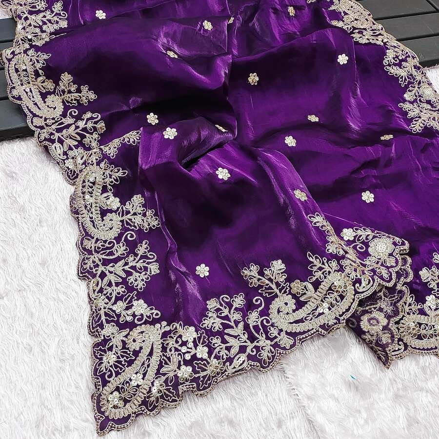 SAREE FABRIC :- FENDY SILK WITH HEAVY EMBROIDERY CODING & SEQUENCE WORK WITH FANCY CUTWORK BORDER