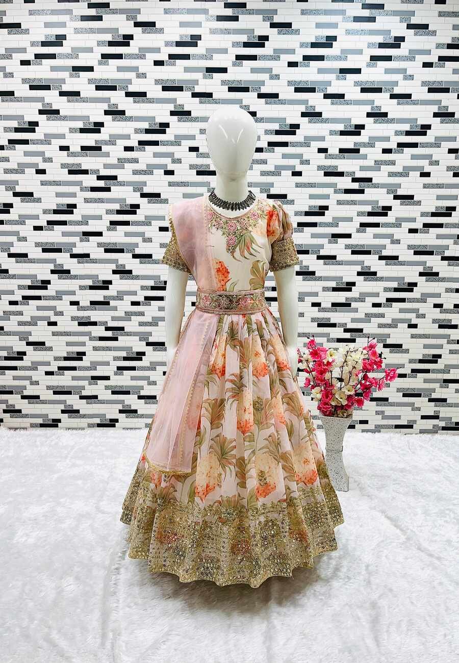 GOWN FABRIC :-HEAVY FAUX GEORGETTE WITH DIGITAL PRINT WORK WITH EMBROIDERY SEQUENCE WORK