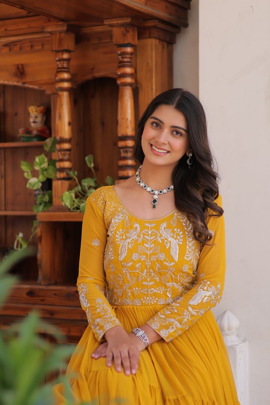 NEW ARRIVAL GEORGETTE EMBROIDERY SEQUENCE WORK ONLY GOWN YELLOW