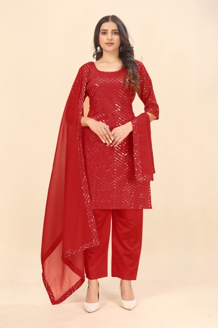 NEW ARRIVAL GEORGETTE EMBROIDERY SEQUNCE WORK TOP DUPATTA RED