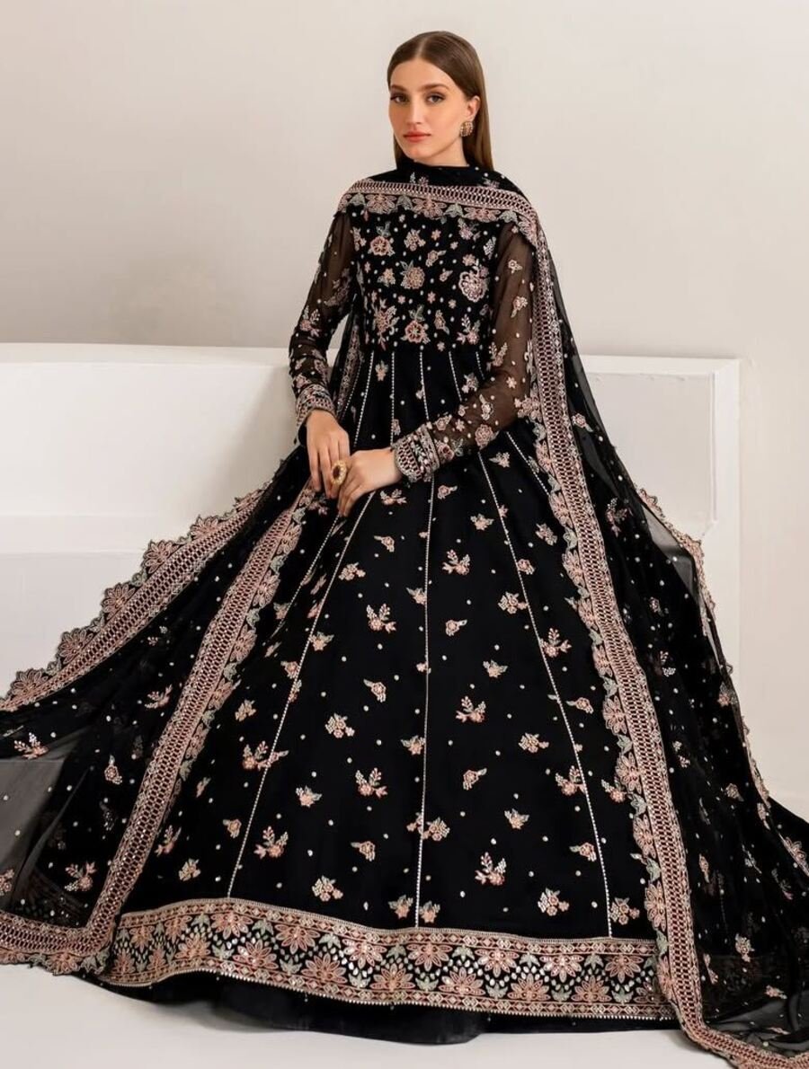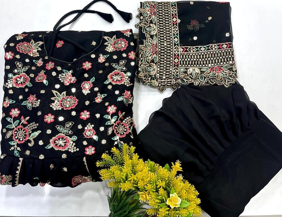 NEW ARRIVAL GEORGETTE SEQUENCE AND THREAD EMBROIDERY WORK GOWN SHARARA WITH DUPATTA BLACK