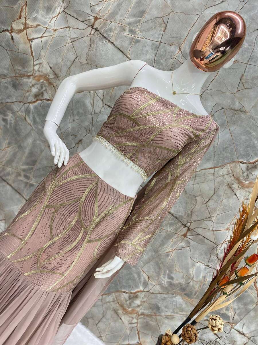 NEW ARRIVAL GEORGETTE SEQUENCE RUFFLE WORK LEHENGA BLOUSE WITH ATTACHED DUPATTA PEACH