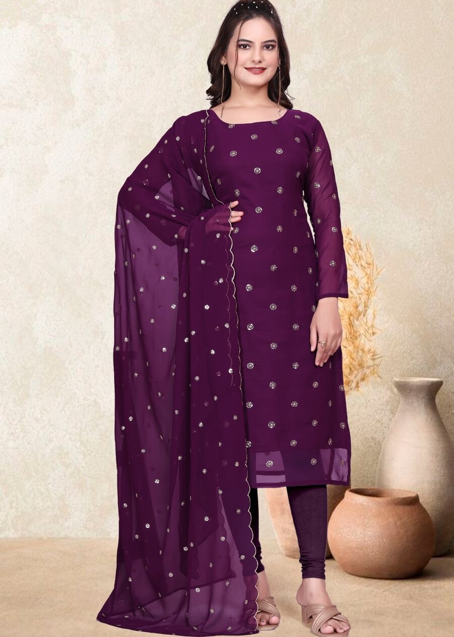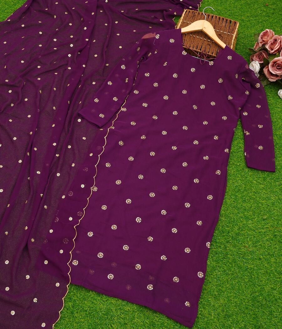 NEW ARRIVAL GEORGETTE SEQUNCE WORK TOP WITH DUPATTA PURPLE