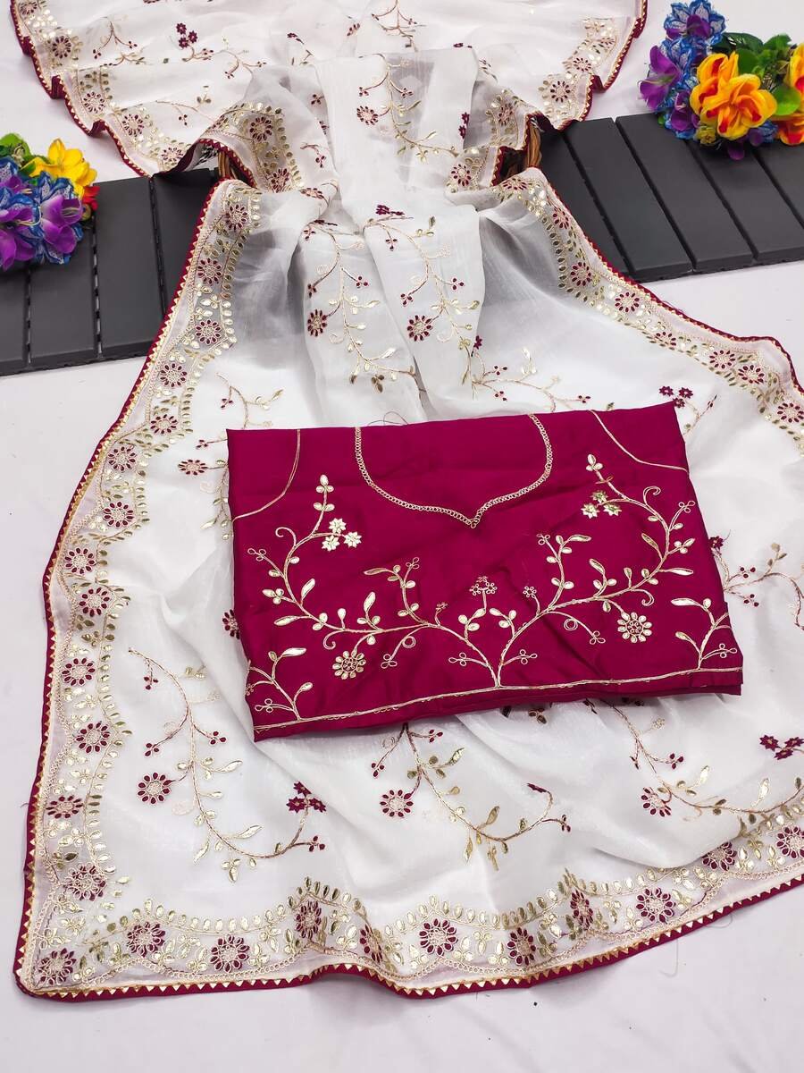 NEW ARRIVAL GOLD CRUSHED MULTI THREAD CODING WORK SAREE WITH UNSTITCHED BLOUSE WHITE