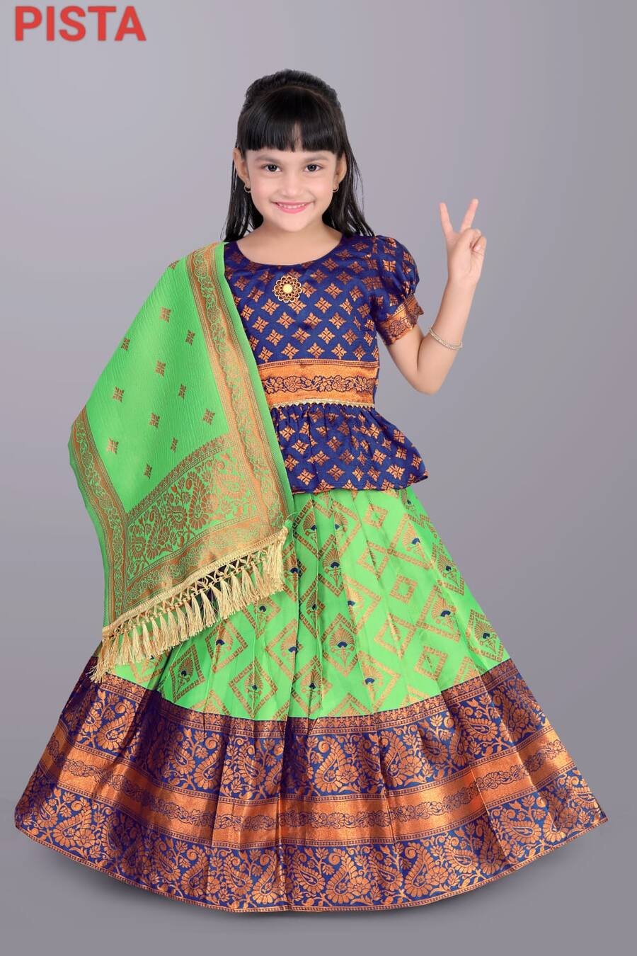 NEW ARRIVAL JACQUARD WEAVING WORK KID’S LEHENGA CHOLI WITH DUPATTA PISTA