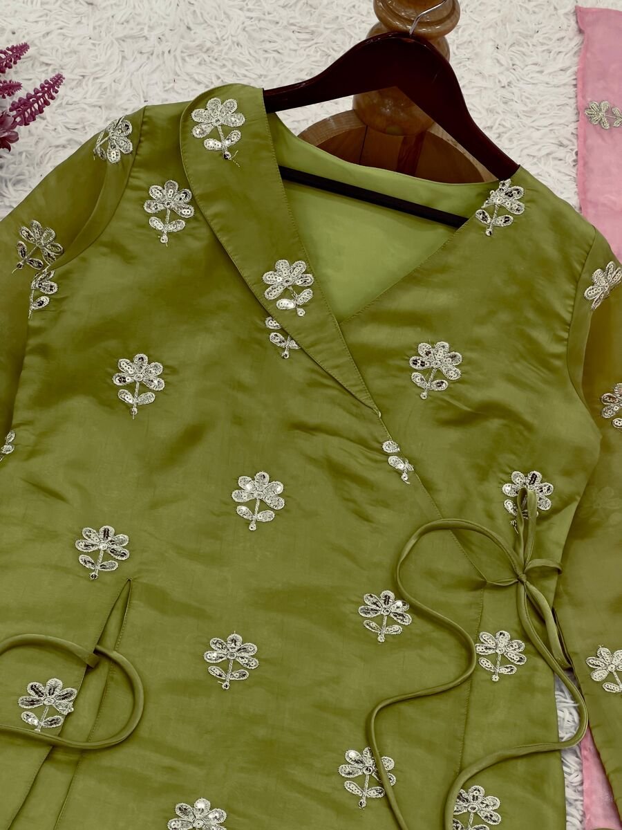NEW ARRIVAL JIMMY CHOO EMBROIDERY SEQUENCE WORK TOP BOTTOM WITH DUPATTA GREEN