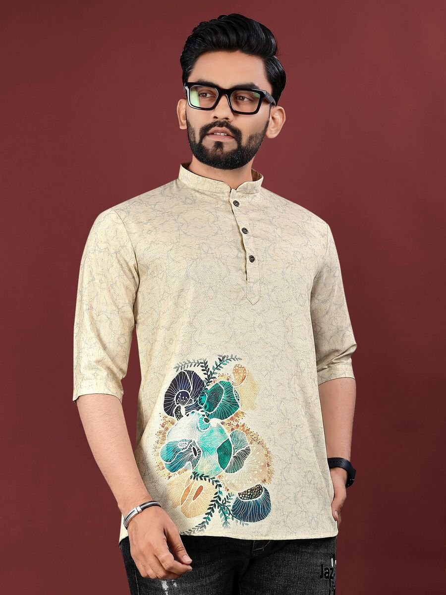 NEW ARRIVAL JUTE COTTON DIGITAL PRINTED MEN’S SHIRT OFF WHITE