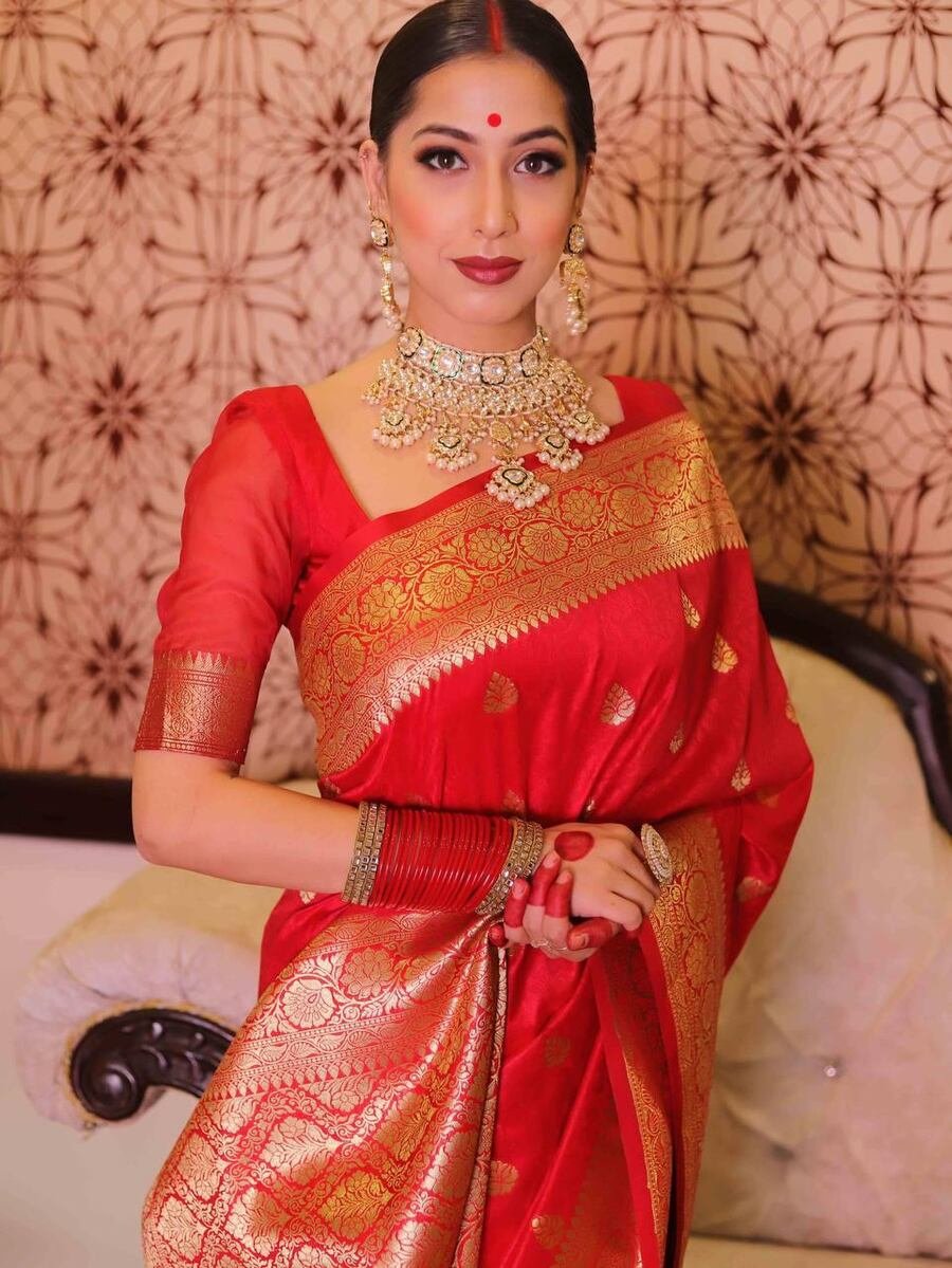 NEW ARRIVAL LICHI SILK ORGANIC BANARASI SAREE WITH UNSTITCHED BLOUSE RED