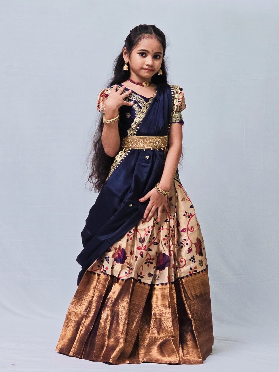 NEW ARRIVAL LICHI SILK ZARI WEAVING WORK WITH CONTRAST HEAVY ZARI BORDER KID’S LEHENGA CHOLI WITH DUPATTA BLUE